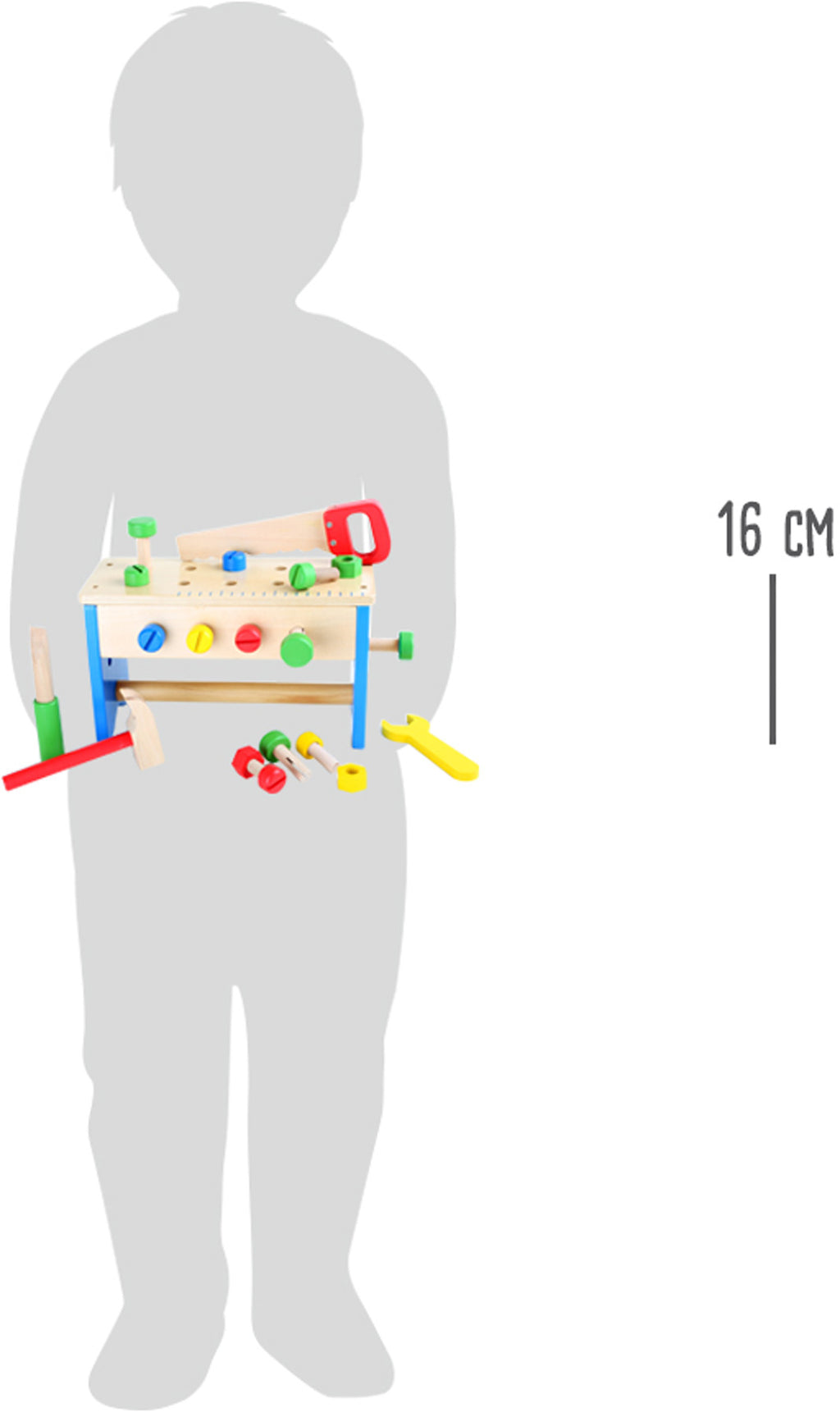 Hier kun je zagen, hameren en schroeven! Deze kleurrijke werkbank verandert in een handomdraai in een gereedschapskist, zodat al het gereedschap van lichtgekleurd hout snel en gemakkelijk kan worden opgeborgen. Met de draaggreep kan de gereedschapskist gemakkelijk worden getransporteerd - zo staat niets meer in de weg bij komende projecten, bijvoorbeeld bij de grootouders. Wat gaan we hierna bouwen?