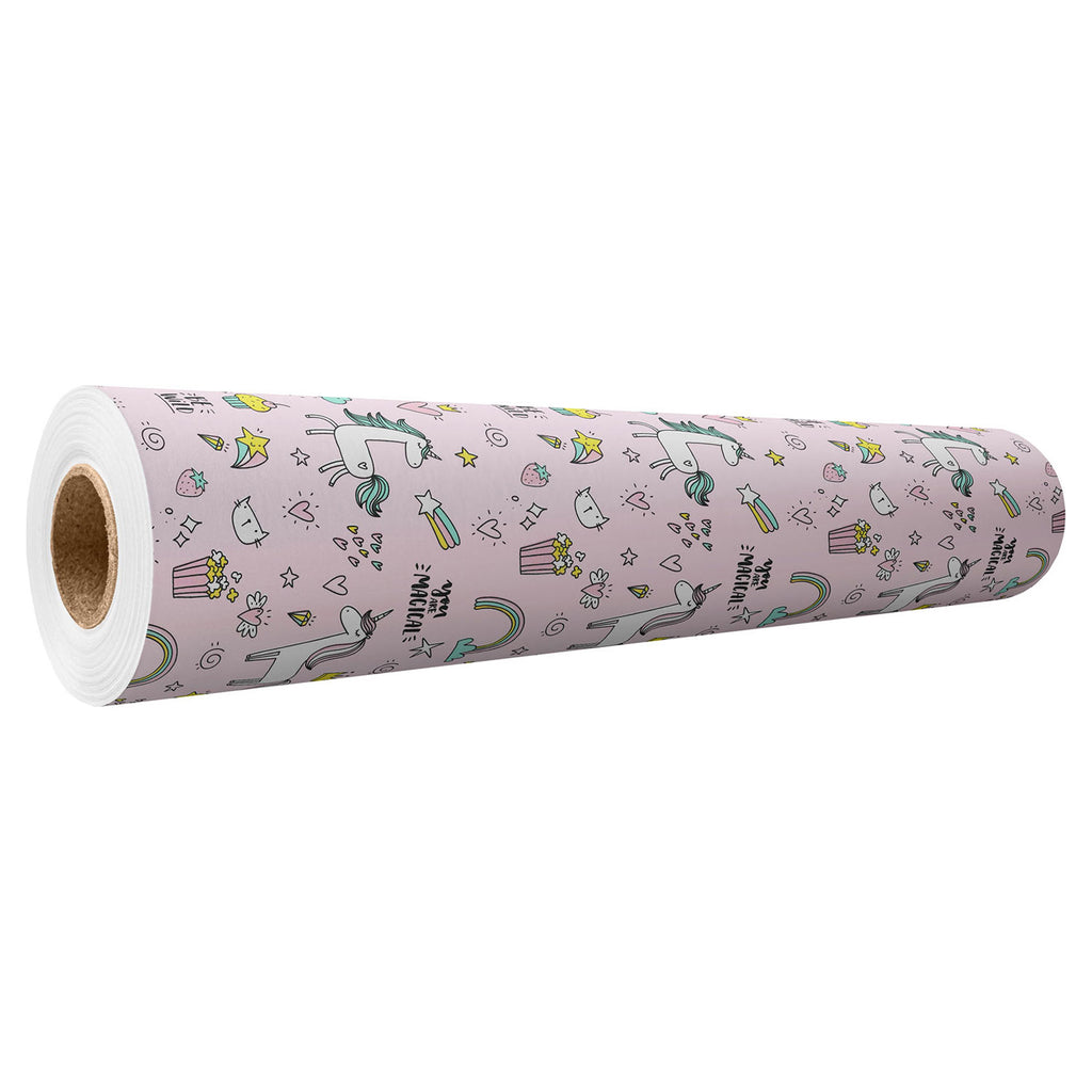 Toonbankrol met een eenhoorn thema. Het cadeaupapier heeft een lengte van 200 meter en is 50 centimeter breed.
