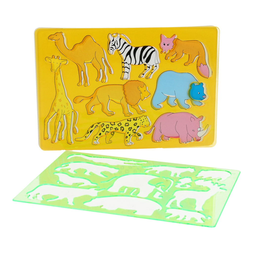 Maak een tekening van de meest exotische dieren met behulp van deze sjablonen. In de set vind je 2 sjablonen van stevig kunststof met dieren van een krokodil tot een aap en een giraffe! Trek de lijnen over met behulp van de sjabloon en maak de rest van de tekening zelf af. Wat gaan de dieren op jouw plaat beleven?
