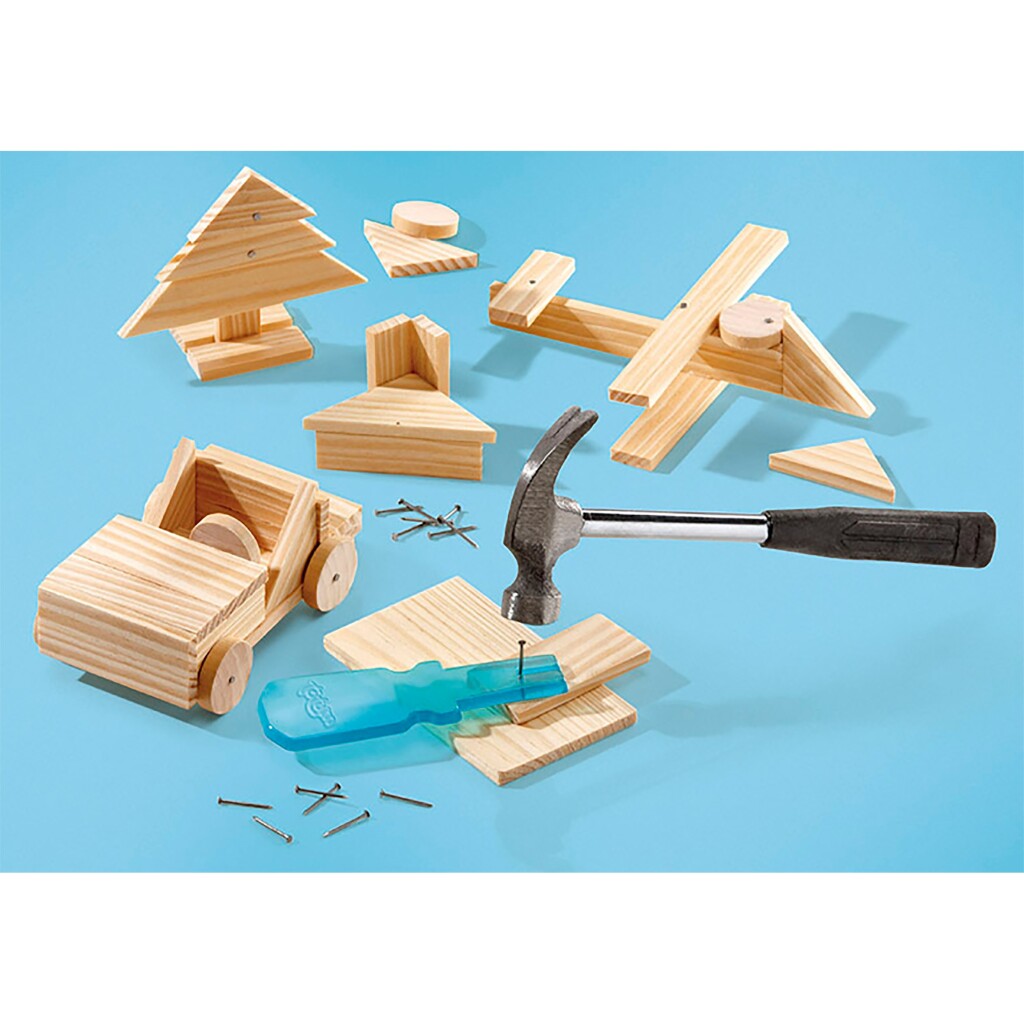 Maak de mooiste creaties van hout met deze set. Maak de voorbeelden na of verzin zelf iets leuks!