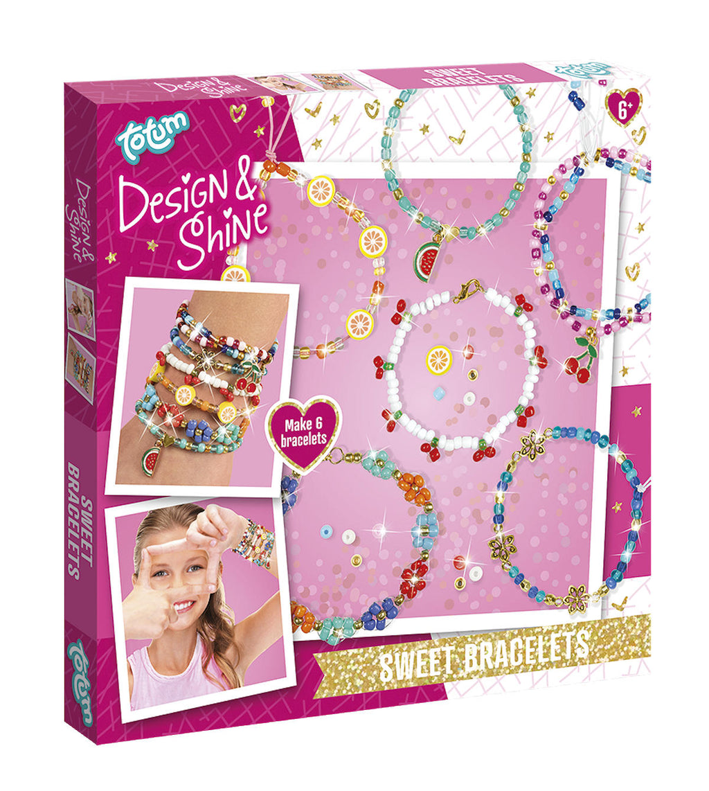 Totum Design & Shine knutselset voor het maken van 6 trendy kralenarmbandjes. In de set zitten o.a. diverse kleuren draad, fruit- en bloemenkralen en gekleurde kraaltjes. Geschikt voor kinderen vanaf 6 jaar oud.