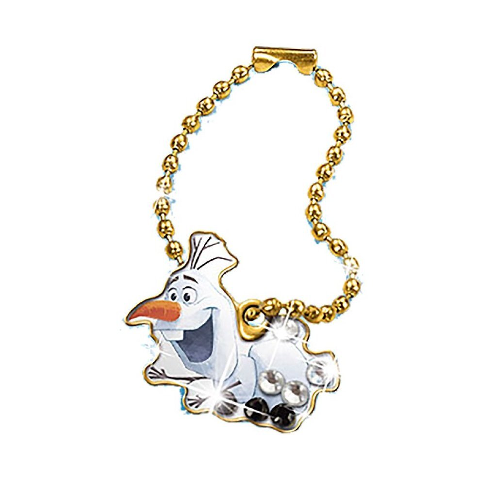 Versier Frozen kaarten met strassteentjes. Er zijn 9 kartonnen figuren die jij helemaal kan versieren met meer dan 3000 strassteentjes. Het koffertje is ideaal om mee te nemen welke je ook nog eens kan omtoveren in een Frozen speelachtergrond. Veel speelplezier! In de koffer zit een goudkleurige Olaf tashanger die je bijvoorbeeld aan je koffer kan hangen.