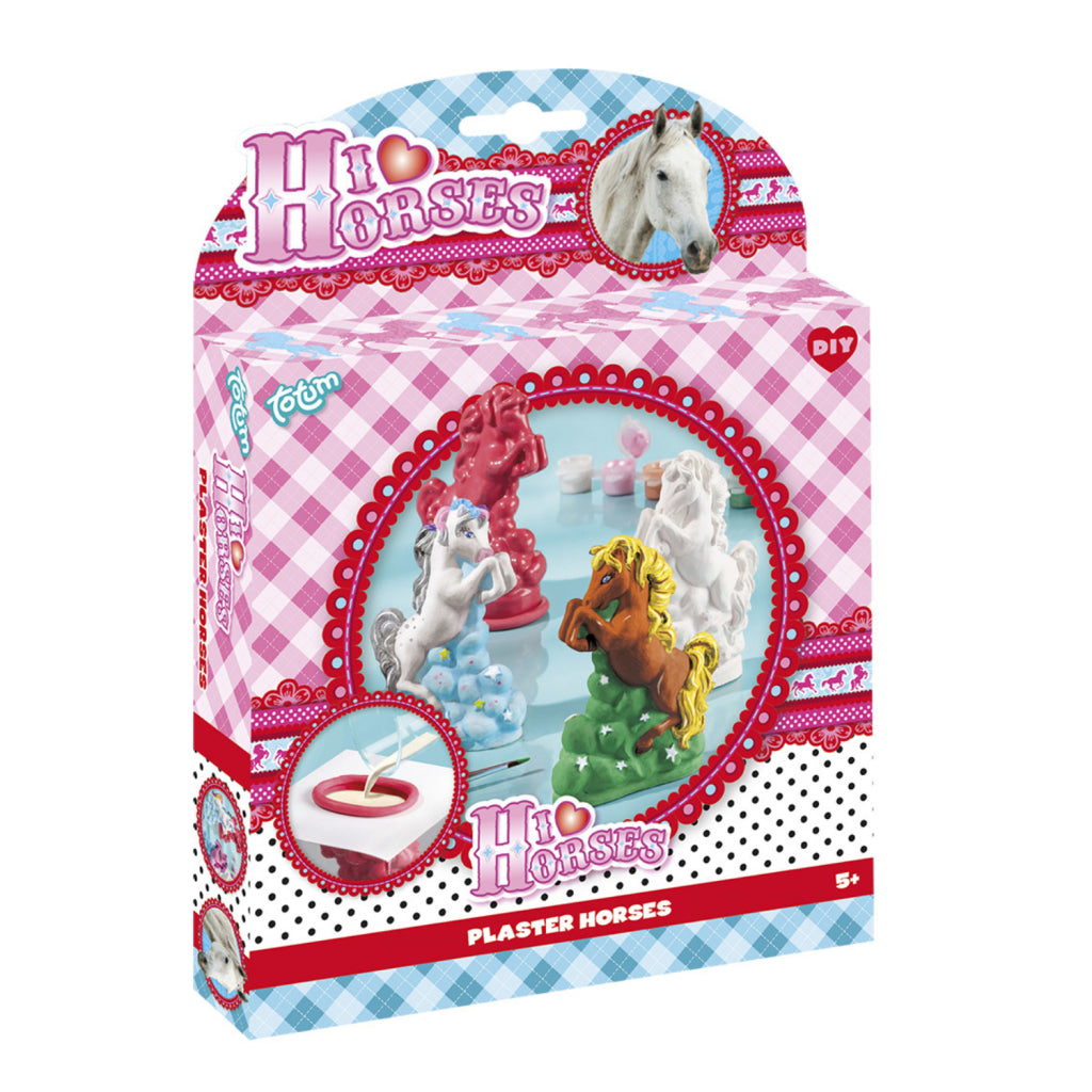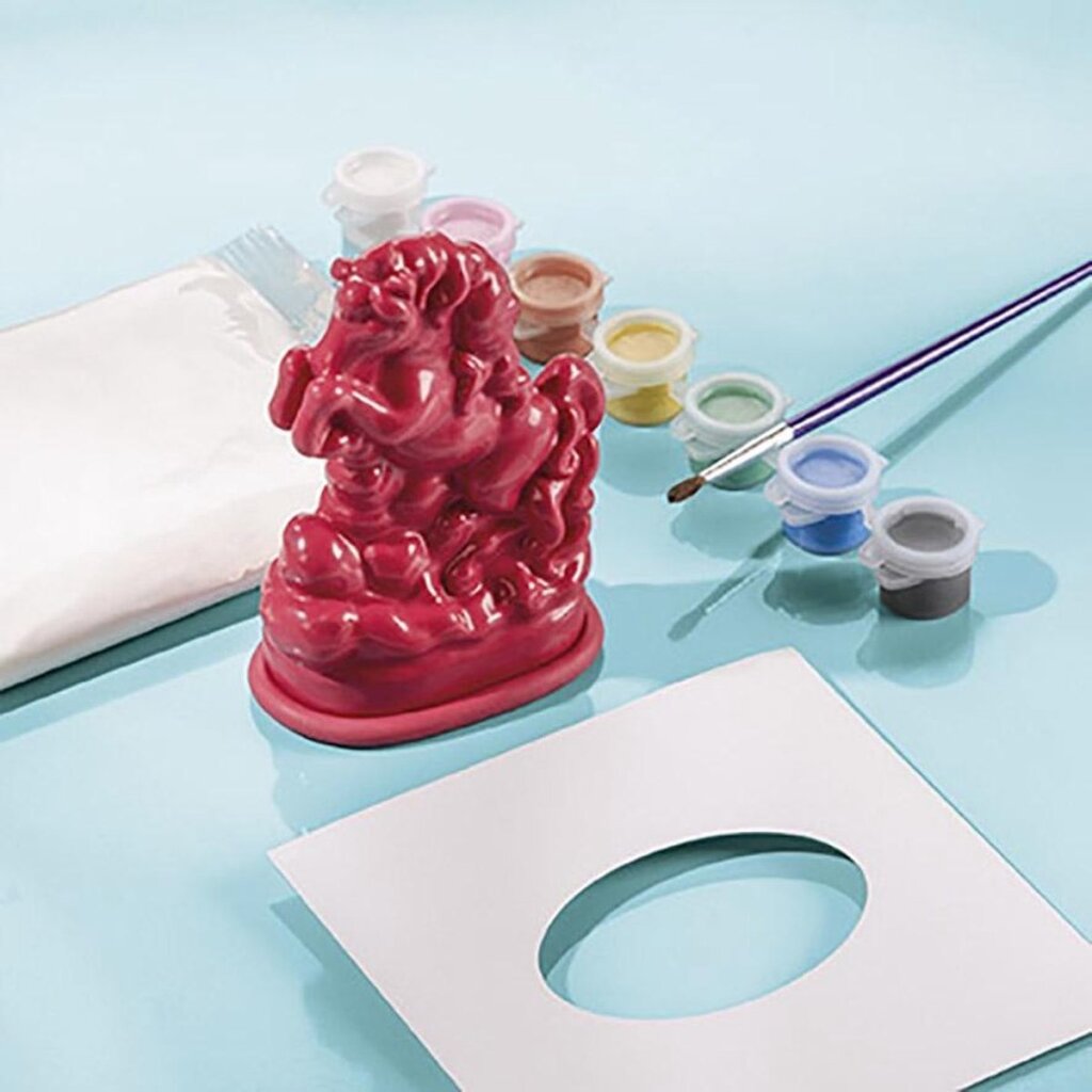 Met deze set maak je de mooiste paarden. Inhoud: herbruikbare rubberen gietvorm, voldoende gips voor 2 paarden, verfstrip met 7 kleuren, penseeltje en een kartonnen houder. Geschikt voor kinderen vanaf 5 jaar.