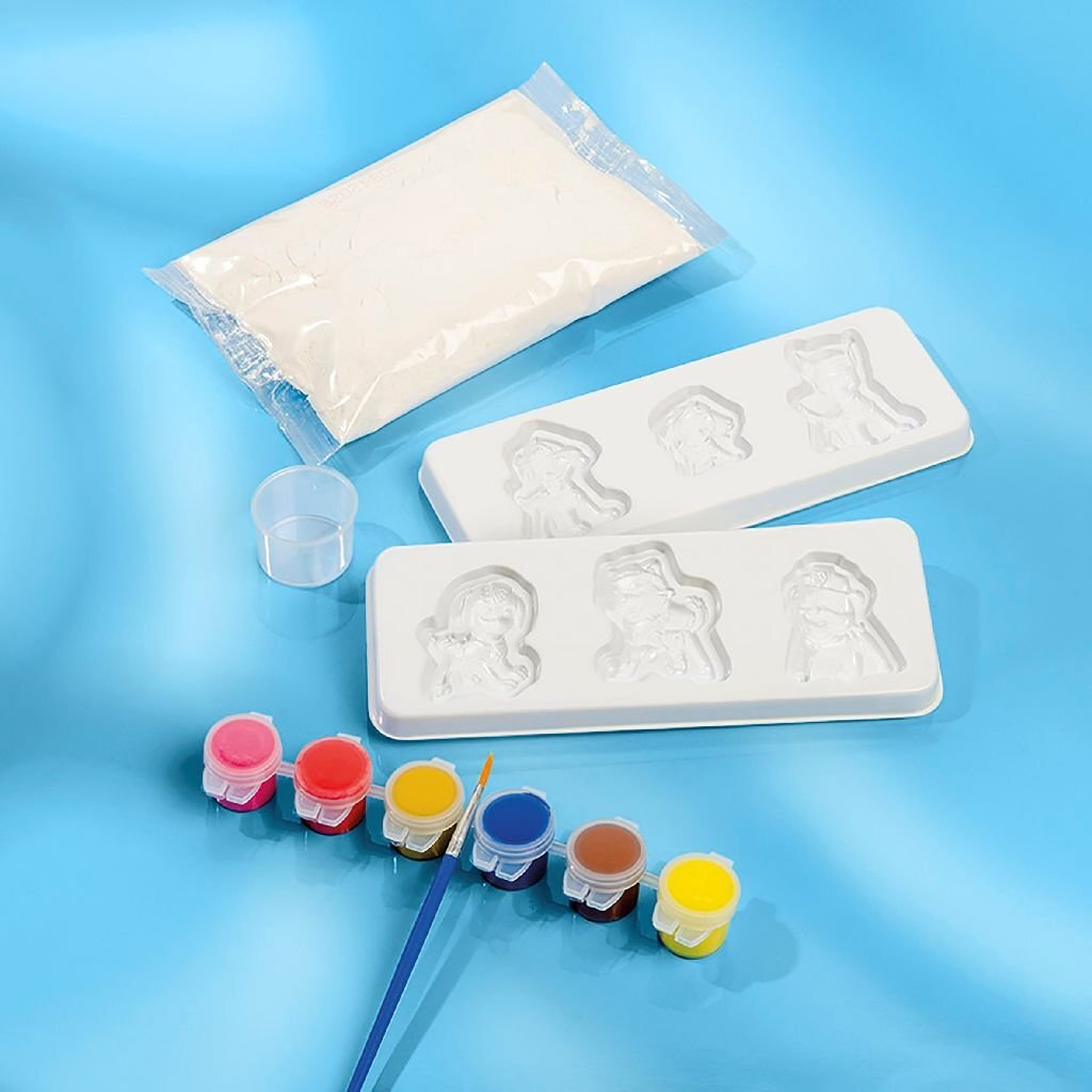 Knutselsetje om 6 PAW Patrol figuren van gips te gieten en te beschilderen. Inclusief verf en penseel. Geschikt voor kinderen van 5 jaar en ouder.