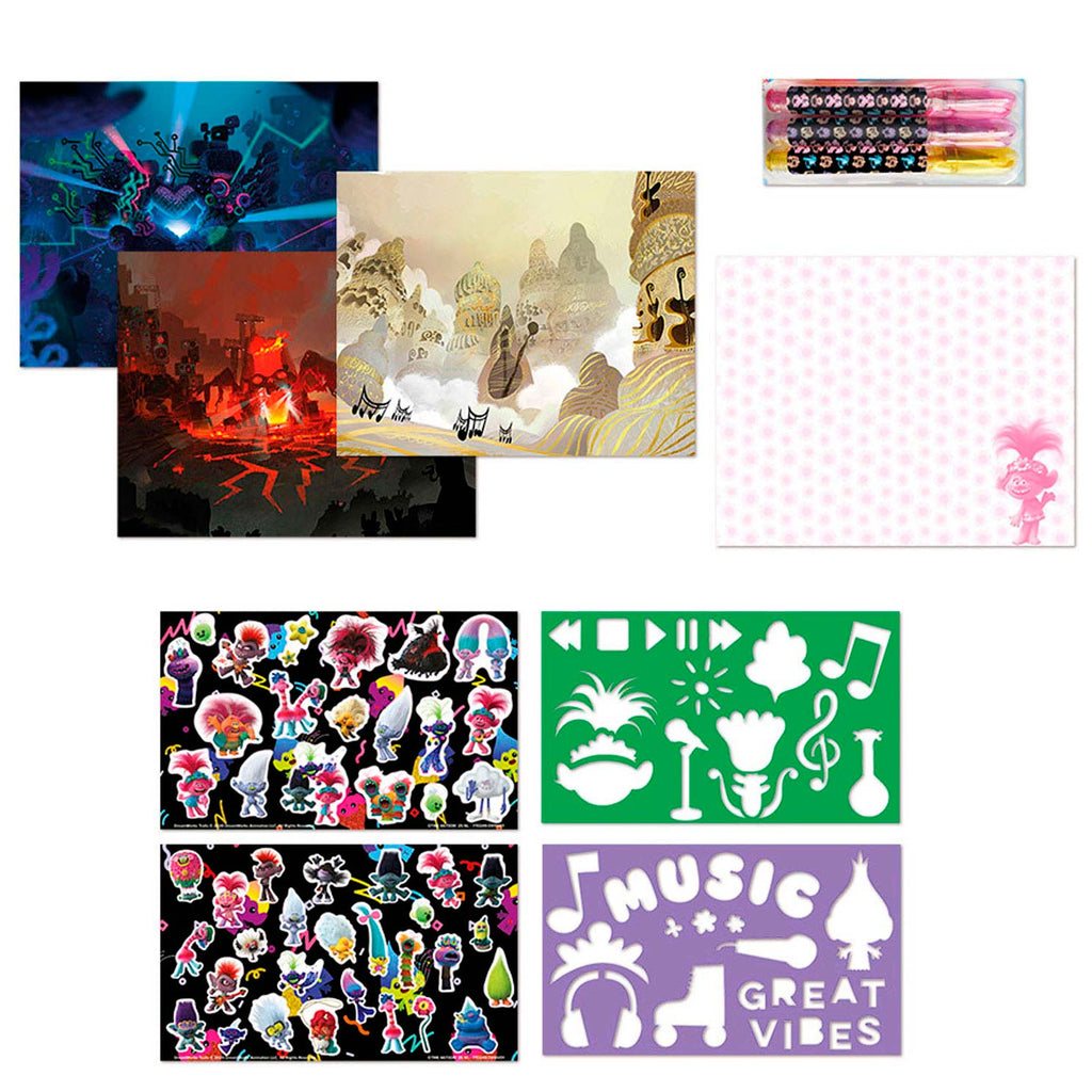 Een zeer leuk activiteiten boekje van Trolls die je ook nog is handig mee kan nemen. Met de sjablonen, stickers, achtergronden en papier maak jij de leukste en mooiste tekeningen.