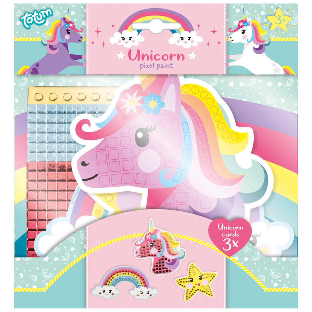 Maak je eigen eenhoorn met de eenhoornmozaïek setvan Totum Maak een prachtige eenhoorn met een regenboog en een ster met deze leuke set! Pak een van de kaarten erbij en zoek de kleur en de vorm uit waarmee je wilt beginnen. Zoek dan de juiste mozaïeksteentjes erbij en plak ze op de juiste plek. Voor je het weet heb je een compleet kunstwerk! Als je klaar bent, kan je de eenhoorn, de ster en de regenboog een mooi plekje aan je muur geven. Knutselen doe je met Totum! Inhoud: Drie kaarten Drie vellen met mozaïeksteentjes De eenhoornmozaïek setvan Totum is geschikt voor eenhoornfans vanaf drie jaar.