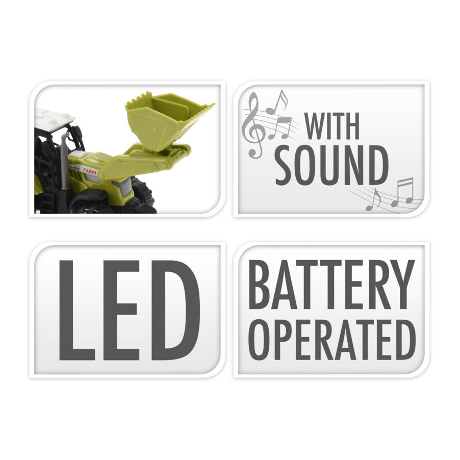 Een tractor van kunststof, voorzien van spannende licht- en geluidseffecten! Dit speelgoed combineert duurzame kunststof materialen met realistische tractorontwerpen en dynamische actie. Deze tractor biedt urenlang vermaak en stimuleert de verbeelding van kinderen terwijl ze avonturen op de boerderij of in de tuin beleven. Geschikt vanaf 3 jaar.