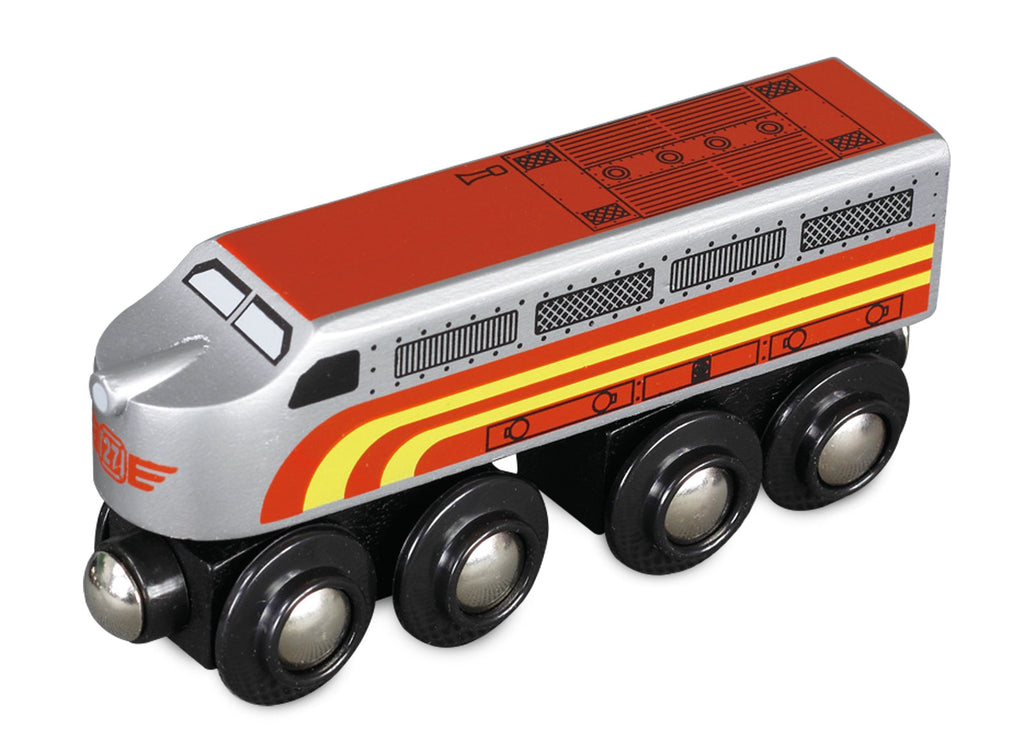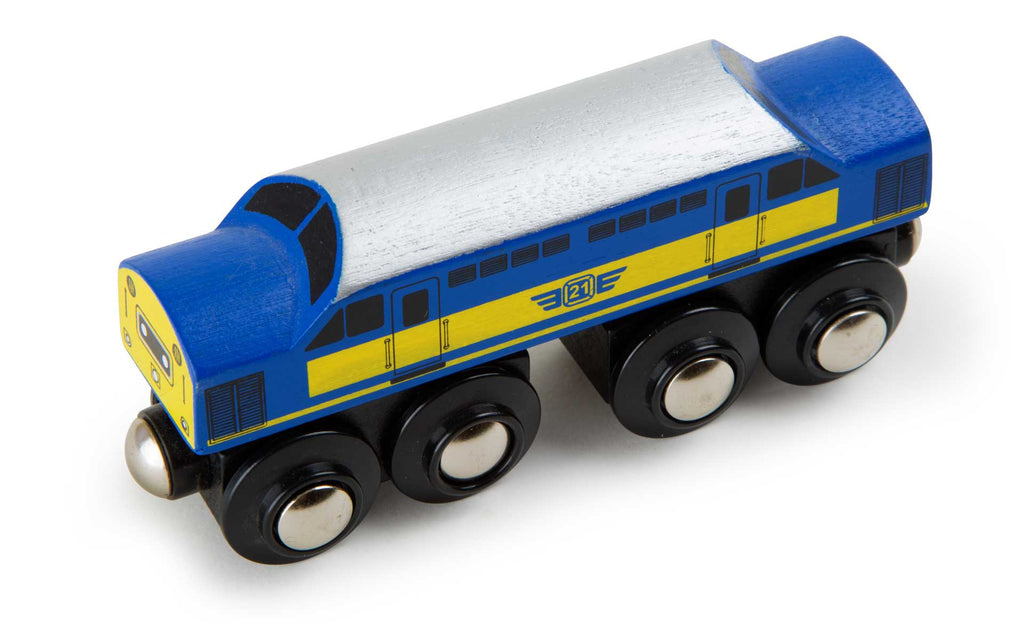 Toot, toot! Deze 24 treinen worden geleverd met een verkoopbevorderende display. De kleurrijk gelakte locomotieven en treinwagons van massief hout kunnen met magneten worden verbonden en zijn combineerbaar met alle grote speelgoedtreinmerken. In de buurt van de kassa kan geen enkele treinenliefhebber eraan weerstaan!