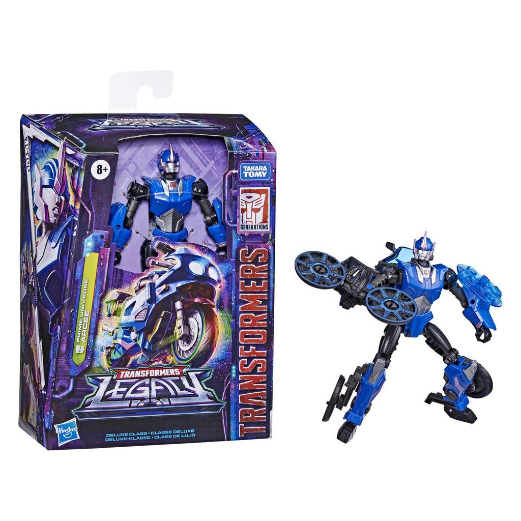 Maak gebruik van de kracht van het Transformers: Legacy Deluxe Prime Universe Arcee-robotspeelgoed! Laat je niet misleiden door haar grootte. Arcee is spijkerhard, uitermate loyaal en steeds gewapend met een grappige oneliner. De universums blijven botsen! Transformers: Legacy brengt de favoriete personages bij fans van over het hele Transformers-multiversum samen. De figuren zijn voorzien van op hun universum geïnspireerde decoratie met een bijgewerkt Generations-ontwerp. Als eerbetoon aan de 40 jaar oude nalatenschap van Transformers-entertainment komen de fandoms van over het hele Transfomers-multiversum samen, en dit alles in één speelgoedlijn. Transformers: Legacy-actiefiguren zijn meer dan alleen speelgoed voor kids. Het zijn geweldige verzamelobjecten voor fans van alle leeftijden! Transformers en alle gerelateerde personages zijn handelsmerken van Hasbro.