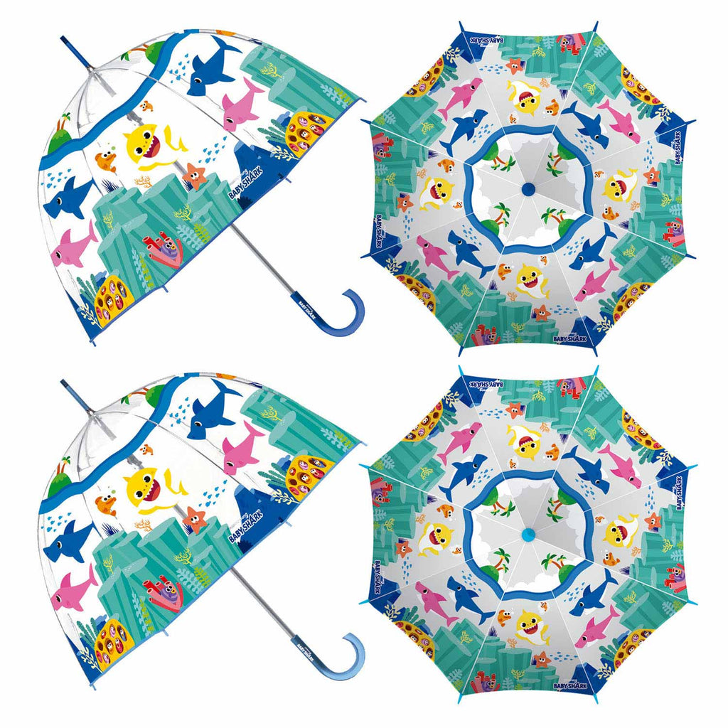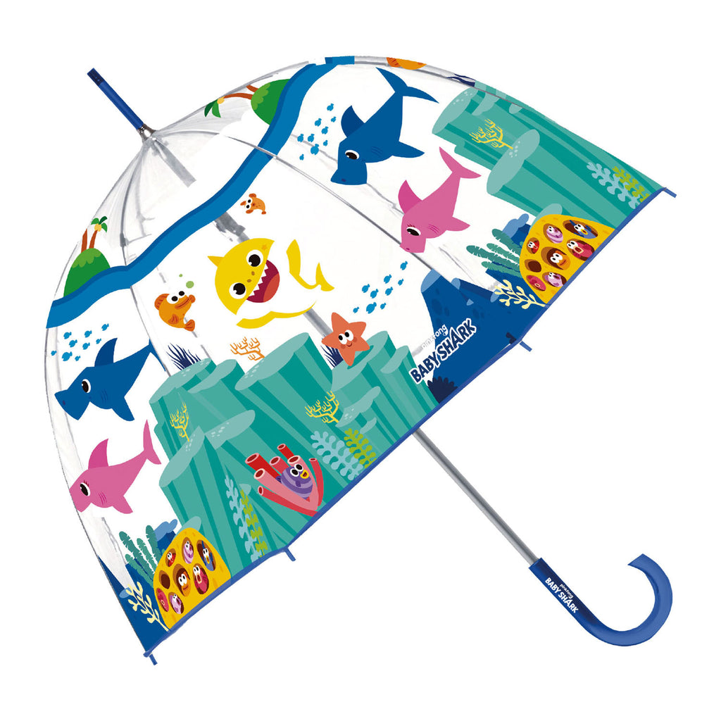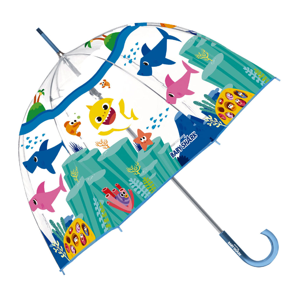 Transparante paraplu met Baby Shark print. Afmetingen: 70 cm, 60 cm doorsnede.