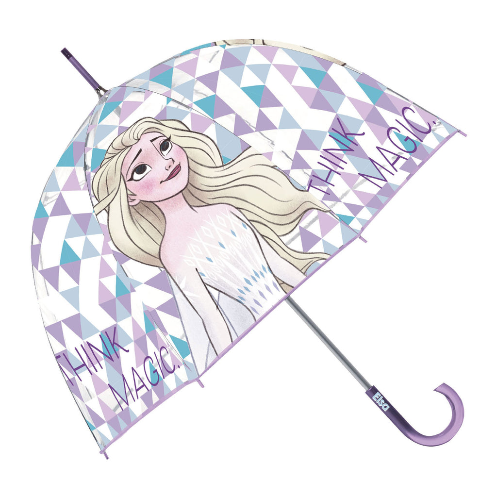 Onder deze transparante Frozen paraplu blijf jij mooi droog! Op de paraplu staat een afbeelding van Elsa van Frozen. De paraplu is 69 centimeter lang en 67 centimeter in doorsnede.