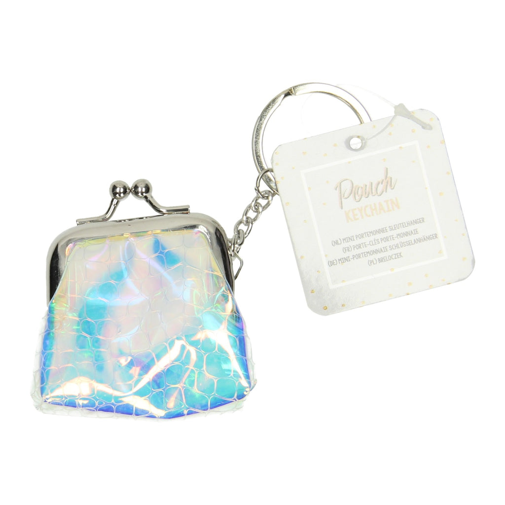 Transparante portemonnees voor aan je sleutebos. De portemonnees zijn circa 7 x 6 centimeter groot en weerkaatsen het licht in verschillende kleuren. Set van 12, niet geschikt voor kinderen onder de 3 jaar oud.