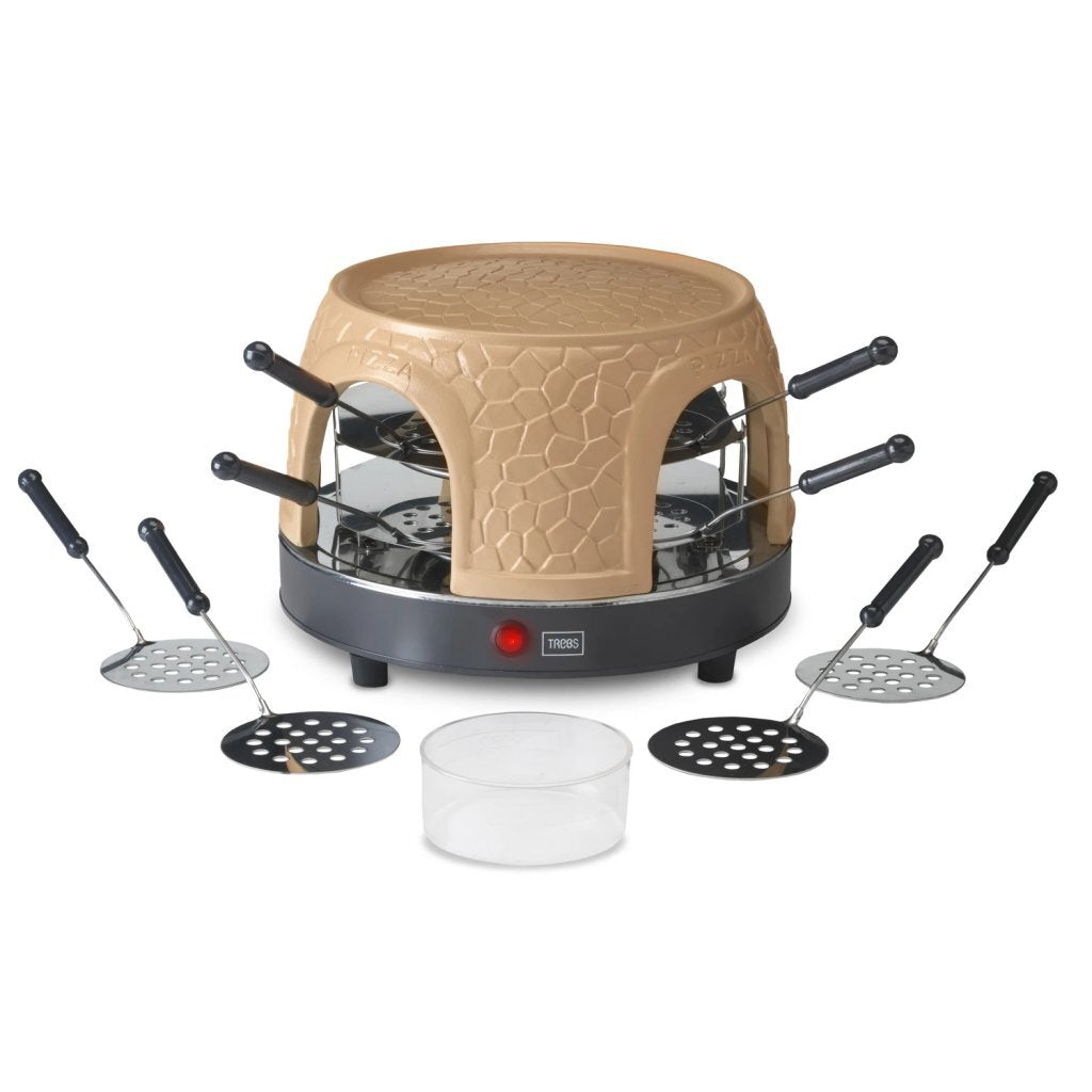 Pizza's maken doe je met een twist met deTrebs 99392 PizzaGusto. Wanneer je uitgekeken bent op de fondue of toe bent aan iets nieuws, kies je voor de PizzaGusto. Of je nou met vrienden of familie eet, voortaan willen jullie alleen nog maar pizzagourmetten.Binnen no time ben jij een échte pizzabakker. Bereid acht losse minipizza?s in de terracotta koepel of kies ervoor om in het midden twee grote pizza te bakken voor het hele gezin. De bodem wordt heerlijk krokant zoals bij een echte steenoven. Kneed en rol het deeg en steek de bodems uit met de bijgeleverde deegvorm. Snij verschillende groenten, salami, stukjes kip of ham, besmeer je bodem met tomatensaus en bestrooi de pizza met kaas. Je kan eindeloos variëren. Leg jouw zelfgemaakte pizza op de bakspatel en binnen 5 minuten is de pizza klaar. Naast een originele variant op een gourmetstel, is deTrebs 99392 PizzaGustoook een ideale keukenhulp voor het bakken van koekjes. Een leuke afsluiter van een geslaagde maaltijd. En daarnaast kun je jouw bereidingen makkelijk warm houden op de speciaal ontworpen terracotta koepel.DeTrebs 99392 PizzaGustois goed schoon te maken. De losse onderdelen zijn vaatwasmachinebestendig en makkelijk op te bergen.In de handleiding vind je enkele handige recepten voor pizzabodems, tomatensaus.Vermogen 950 W. Afmeting ca. diameter 40 cm x hoogte 30 cm. Inclusief 8 bakspatels, bakplaat en pizzavorm.