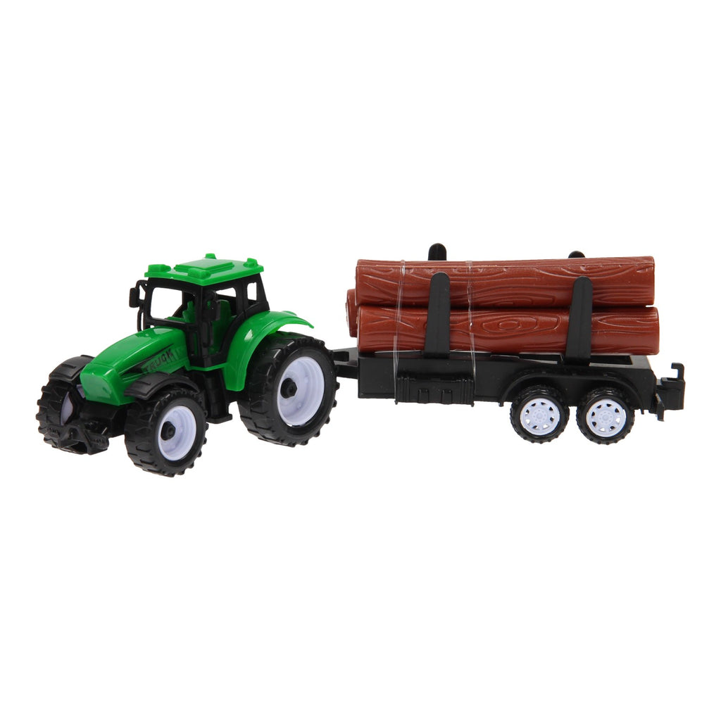 Beleef de leukste avonturen op de boerderij met deze 3-delige trekkerset. Verzamel met de groene trekker de boomstammen van het land, geef de gewassen water met de rode trekker met giertank of verzamel gras met behulp gele trekker met aanhanger. De trekkers met aanhangers zijn gemaakt van stevig kunststof en zijn niet van elkaar los te koppelen.
