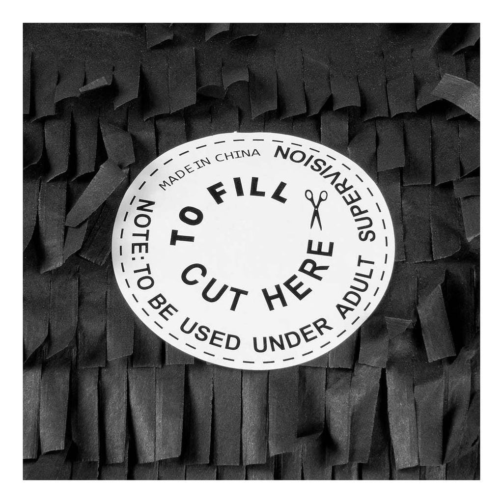 Roze hartvormige trekpiñata van karton en papier, afmetingen 37 x 36 x 7,5 cm.