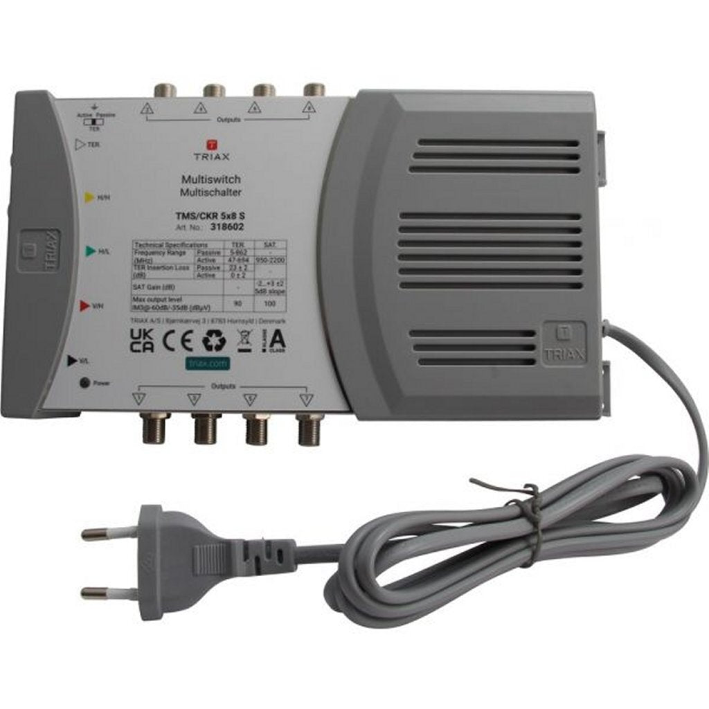 Standalone multiswitch voor 1 satellietpositie met 5 ingangen en 8 uitgangen, geschikt voor het distribueren van satelliet- en terrestrische signalen in kleine en middelgrote systemen. Betrouwbaarheid gegarandeerd:een garantie van 6 jaar is onze garantie dat de kernwaarden van TRIAX, betrouwbaarheid en innovatie, de basis vormen van onze nieuwe multiswitches. De TMS/CKR 5x8 S biedt uitstekende prestaties en flexibiliteit, met een compact ontwerp voor installaties, zelfs in krappe ruimtes.
