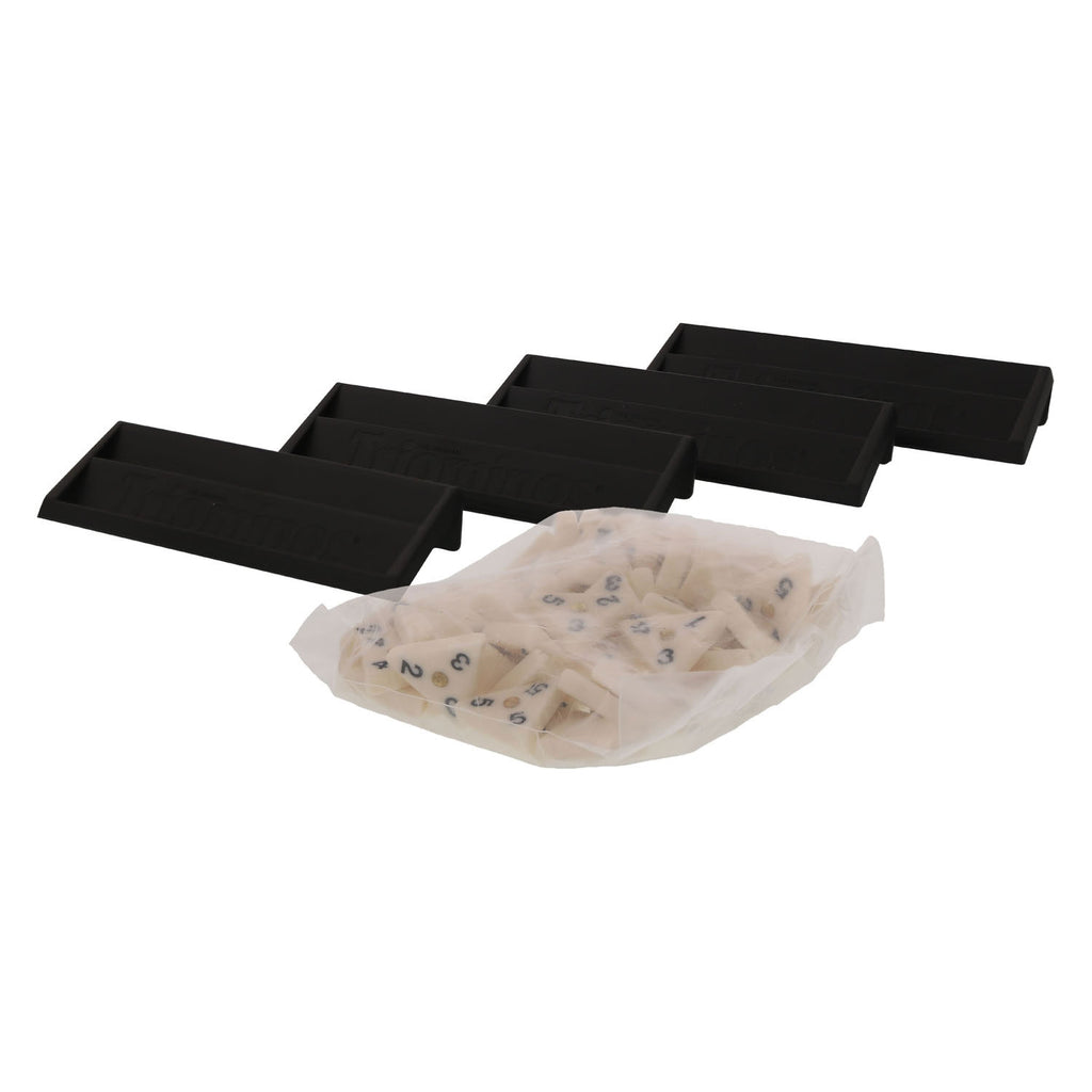 Een boeiende en succesvolle variant van het populaire Triominos domino spel met driehoekige stenen en onverwachte combinaties. Een spannend spel waarbij de speler de logica en de tactiek moet beheersen. Deze variant is ideaal door de praktische tas met stevige rits.