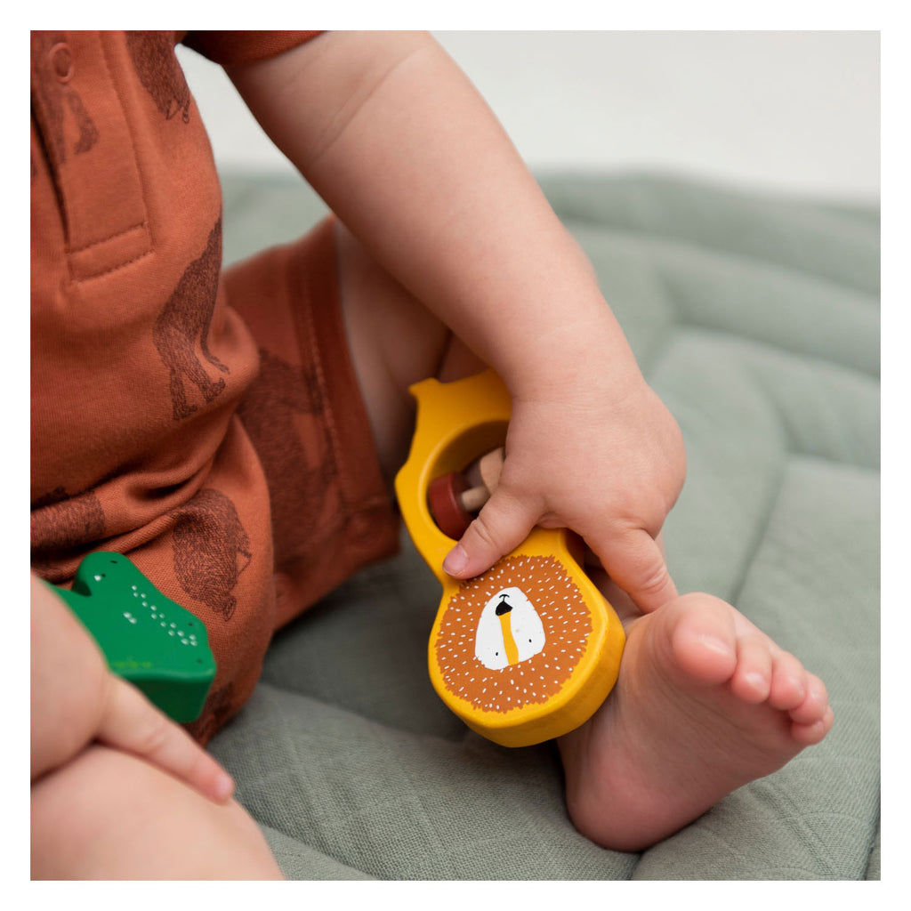 De allereerste dierenvriend van een pasgeboren baby! Je kleintje beleeft uren speelplezier met de kralen die vrolijk ronddansen in de buik van het dier. Deze rammelaar is gemaakt van hoogwaardig 100% FSC © gecertificeerd beukenhout. Alle verven zijn op waterbasis en veilig voor baby's. Verkrijgbaar in verschillende dieren.