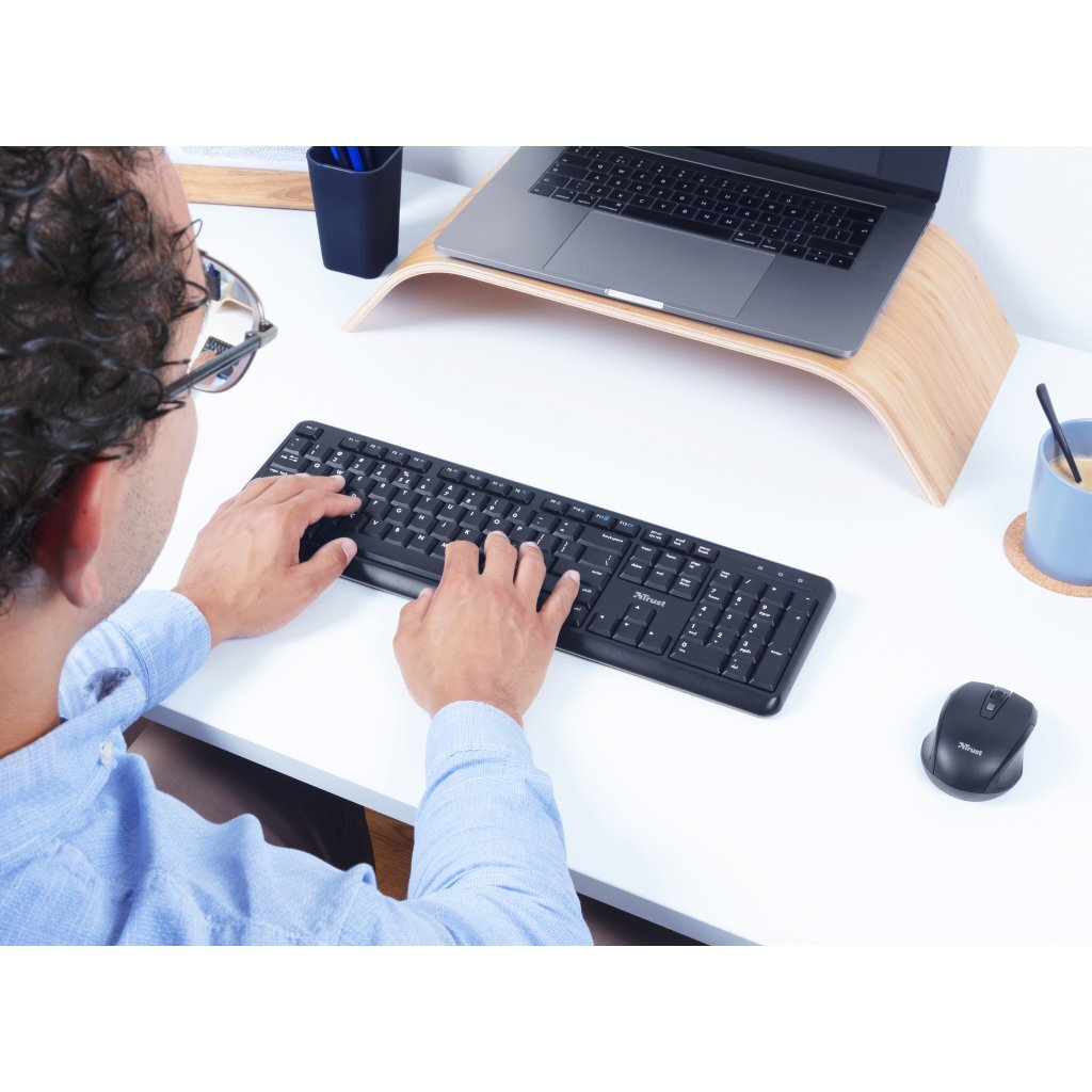 Het Trust Ody Silent Wireless Keyboard met Mouse is de juiste combinatie om je werk comfortabeler te maken dan voorheen.De stille toetsen zorgen ervoor dat anderen niet gestoord kunnen worden door je werk, het toetsenbord zelf is morsbestendig en dankzij de draadloze set biedt deze set veel flexibiliteit.Het Ody Silent Wireless Keyboard biedt alles wat je nodig hebt voor een soepele typervaring.De onopvallende volledige lay-out heeft een stille toetsaanslag, terwijl de verstelbare hoek en rubberen antislipvoetjes je helpen urenlang comfortabel te werken.Het is morsbestendig en heeft 12 multimedia functietoetsen;alles wat u ooit nodig zult hebben om de klus te klaren.De meegeleverde muis heeft een vergelijkbaar modern ontwerp en wordt ook geleverd met stille knoppen.Niemand zal gestoord worden door je harde werk.Het heeft een DPI-knop zodat u de snelheid van uw cursor kunt aanpassen en de muis gebruikt een betrouwbare optische sensor zodat u op de meeste oppervlakken kunt werken.Flexibiliteit is hier het sleutelwoord.Deze set gebruikt dezelfde draadloze USB-ontvanger voor zowel het toetsenbord als de muis.Sluit hem gewoon aan op een vrije USB-poort van uw pc of laptop en u kunt aan de slag.Een opgeruimd bureau zorgt voor een opgeruimd hoofd.En als je klaar bent, berg je de ontvanger gemakkelijk op in de muis zelf wanneer je deze set mee wilt nemen.