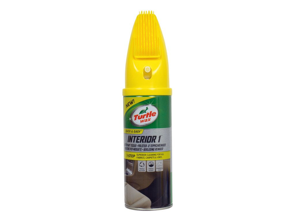 Turtle Wax Interior 1 bekleding reiniger bestrijdt vuil en onaangename geuren uit de autobekleding of ander textiel. Met de spray behandel je zelfs hardnekkige vlekken op textielsoorten zoals autobekleding en tapijt. De Turtle Wax Interior 1 frist de kleur op en bestrijdt vieze luchtjes. Uw auto interieur is snel weer opgefrist. De Turtle Wax bekledingsreiniger heeft een makkelijke borstel zodat je de reiniger makkelijk kan aanbrengen en vormt een onzichtbare, vuilafstotende beschermlaag. Krachtige vlekkenverwijderaars en reinigingsmiddel scheiden het vuil van de stoffen, terwijl speciale Geurneutralisatoren slechte geuren verwijderen. De droogschuimformule zakt niet in de zitting, zodat deze na het aanbrengen droog blijft aanvoelen. Semi-flexibele borstelharen geoptimaliseerd voor de volledige reiniging van de bekleding en veelzijdige reinigingskrachten voor het verwijderen van vlekken, morsingen en andere ongelukjes in de auto of in het huishouden.