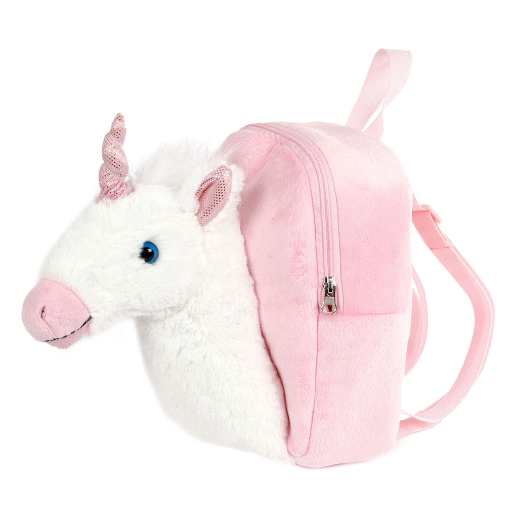 Unicorntas met witte eenhoorn en roze tas, met verstelbare schouderbandjes, 26 cm hoog.
