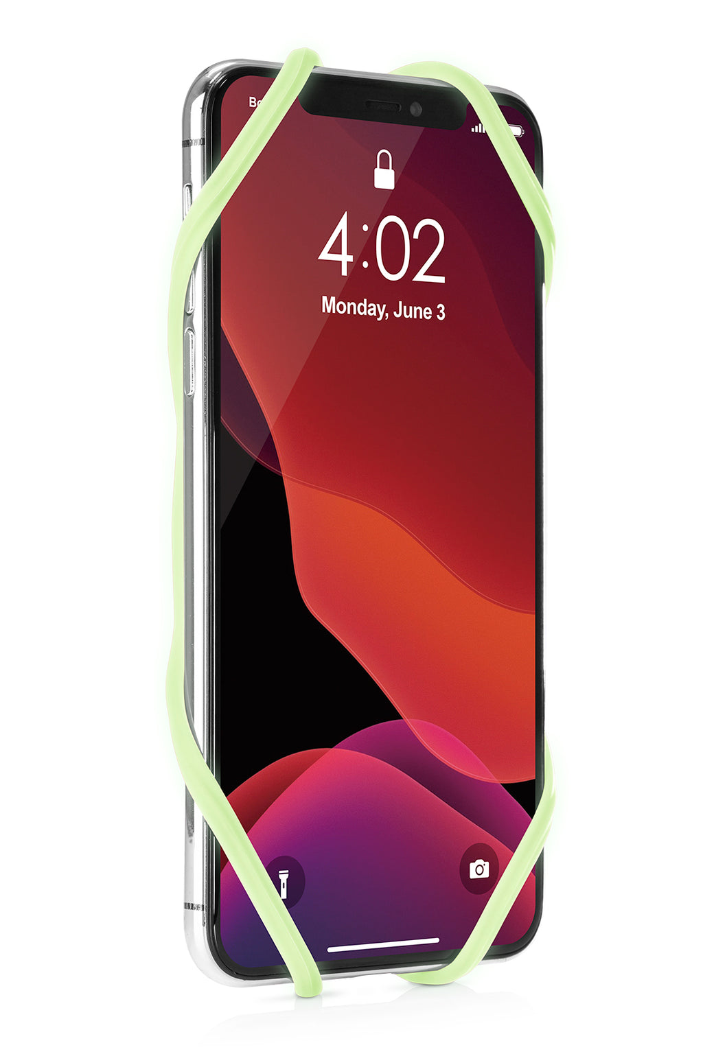 De universele telefoon fietshouder Bike Tie 4 Luminous (Glow in the Dark) van Bone Collection is licht van gewicht, super sterk en erg makkelijk in gebruik. Geschikt voor alle smartphones (4.7-7.2 inch). Toepasbaar op verschillende buisdiameters, kan worden bevestigd aan stuurpen (horiontaal) of stuur. Hoge rekbaarheid ontworpen voor smartphones van 4,7 inch tot 7,2 inch. Elastisch materiaal vermindert de impact wanneer u over oneffenheden gaat.