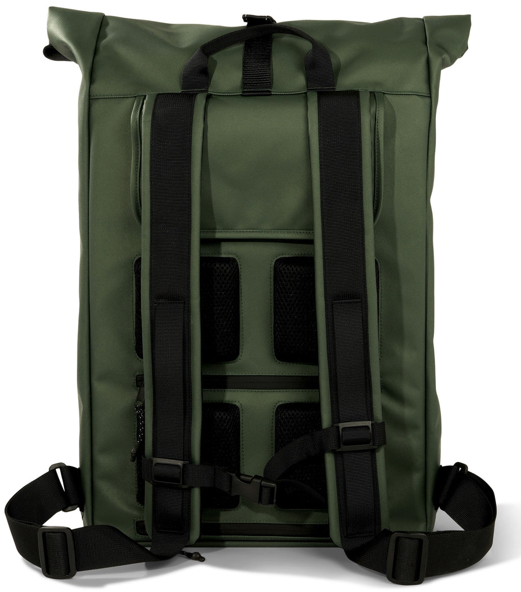 De Rolltop Backpack: de ultieme tas voor de moderne en bewuste drager. Met een opgerolde sluiting en volume om al je spullen mee te nemen. Geen pijnlijke rug meer dankzij de comfortabele padding, en je kunt hem zelfs gemakkelijk bevestigen op je fiets. Geen gedoe meer om je sleutels te vinden met twee handige voorvakken is alles binnen handbereik. Maar maak je geen zorgen over je portemonnee, die zit veilig in het verborgen achtervak met rits. Het beste aan deze tas? Het is gemaakt van 47 gerecyclede PET-flessen, dus je kiest niet alleen voor een mooi ontwerp, maar ook voor de planeet. Voor de echte Commuter die stijlvol en verantwoord op pad gaat. Vario Fix fietshaken E-Bike compatibel Waterbestendig 17 inch laptopvak gevoerd Gemakkelijk toegankelijke voorvakken Reflectie op de straps van de sluiting Verborgen zak aan de achterkant met rits Regenhoes voor rug padding Extra informatie: Kleur: Groen, Zwart Type: Enkele tassen Volume: 20 liter Afmeting: L x B x H 34cm x 13cm x 46cm Gewicht: 1430 gram Waterbestendig: Ja