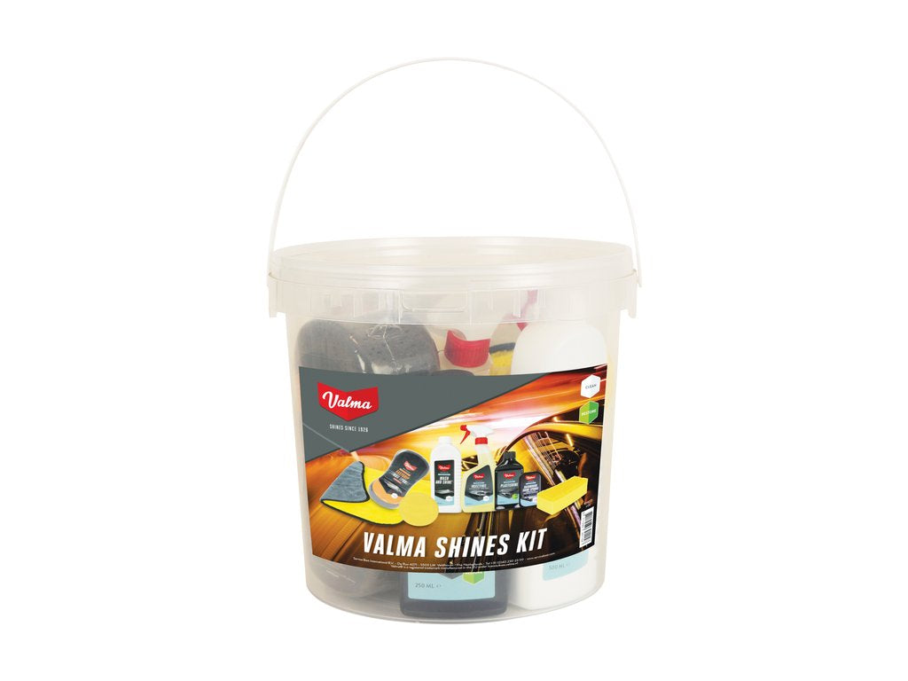 De Valma poetsemmer is zo samengesteld dat deze alle producten heeft om de auto weer helemaal schoon te krijgen, snel en met een streeploos resultaat. Inhoud Valma poetsemmer: Wash & Shine Insectfree Plastishine Easygrip Jumbo spons Clean & Safe Insecten spons Dashboard Shine spons Microvezel Finishing doek Detailing Applicator Pad Allemaal in een handige emmer.