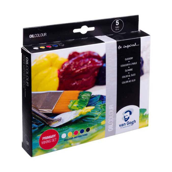 Deze primaire mengset bevat 5 tubes olieverf in de 3 primaire kleuren, zwart en wit. Meng deze kleuren om een eindeloze reeks verschillende tinten te creëren. De set bevat ook een brochure met informatie over het mengen van kleuren en een QR-code die naar onze website leidt voor aanvullende informatie en een gedetailleerde video.
