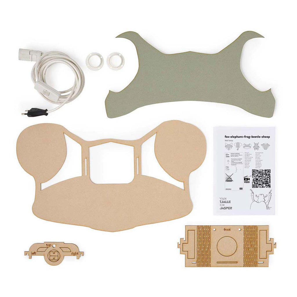 Onze kikker wandlamp wordt geleverd als een handig bouwpakket. In de doos vind je alles wat je nodig hebt, inclusief een heldere handleiding. Het in elkaar zetten is eenvoudig en kost slechts een paar minuten. Let wel, de lichtbron wordt niet meegeleverd. Wij raden aan om een LED-lichtbron te gebruiken voor het beste resultaat.
