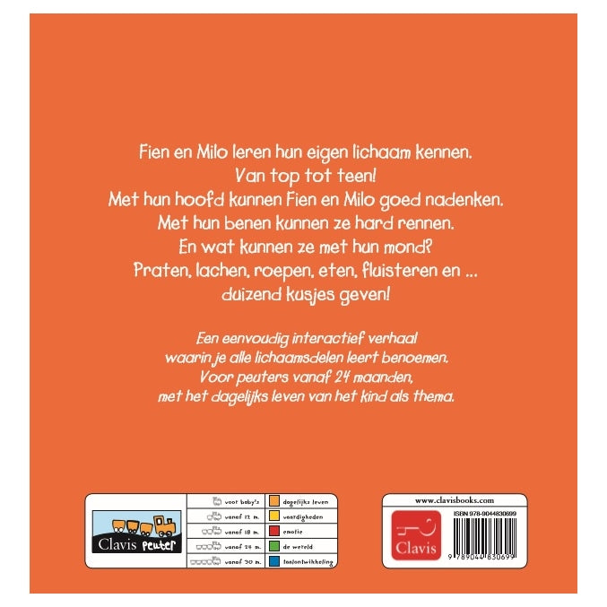 Fien en Milo leren hun eigen lichaam kennen. Van top tot teen! Met hun hoofd kunnen Fien en Milo goed nadenken. Met hun benen kunnen ze hard rennen. En wat kunnen ze met hun mond? Praten, lachen, roepen, eten, fluisteren en ... duizend kusjes geven!