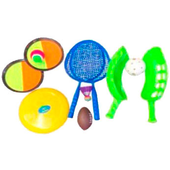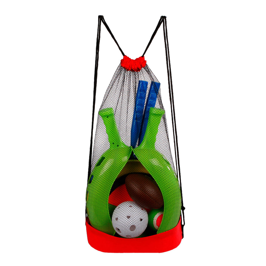 Met deze tas heb je in één klap vijf zomerspellen bij de hand. Neem deze tas mee naar het strand of naar het park in de buurt en je hebt uren plezier. In de set zit badminton set, twee vang- en werpspellen, een rugby balletje en een frisbee.