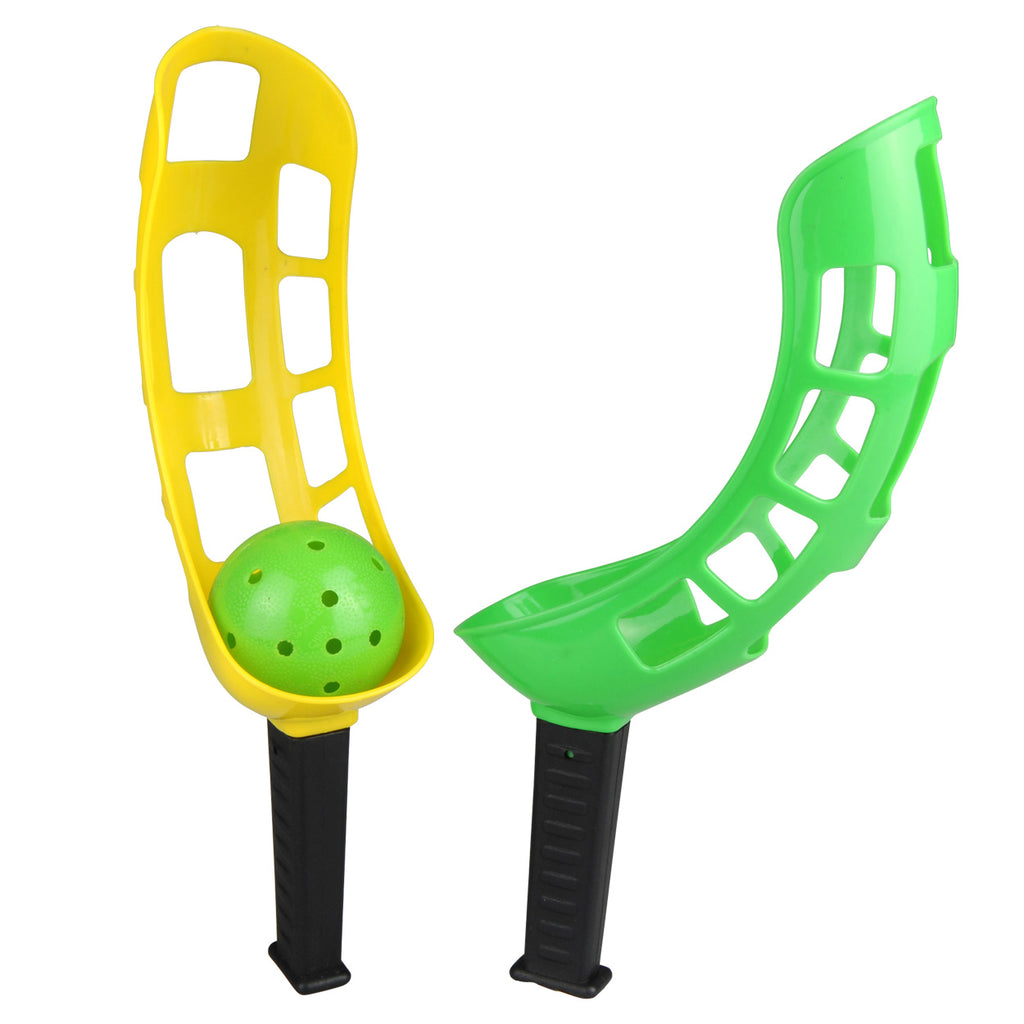 Set van 2 vang-lepels. Probeer met de vang-lepel het balletje te vangen die de tegenstander naar je gooit.