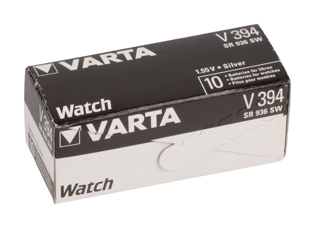 VARTA horloge batterij. VARTA type: V394. Voltage: 1. 55. System: Silver. Capacity: 67 mAh.IEC code: SR45.VARTA Watch Battery. VARTA type: V394. Voltage: 1. 55. System: Silver. Capacity: 67 mAh. IEC code: SR45. Height: 3. 6 mm. Diameter: 9. 4 mm. EAN code:4008496245826.