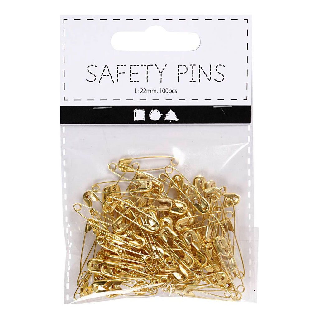 Set van 100 goudkleurige veiligheidsspelden, gemaakt van metaal.
