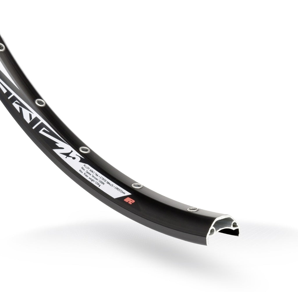 Deze geweldig velg is bedoeld voor offroad-gebruik. Het is perfect voor Cross-Country en All-Mountain en werd ook gebruikt met goede prestaties in Enduro #XC, #All Mountain, # E-bike Eigenschappen: ETRTO: 622x25C Velg: TRYP 25 Afmetingen: - Velghoogte: 16.3 mm - Velgbreedte binnenzijde: 25 mm - Velgbreedte buitenzijde: 29,3 mm - ERD (effectieve velg diameter): 622 mm Spaakgaten: 32 Remtype: disc Geschikt voor tubeless rijden Grootte ventielgat: 6,5 F Bandbreedtes: 28 t/m 83 mm Materiaal: Aluminium Afwerking: poedercoating zwart Gewicht: 541 gram Met single eyelets
