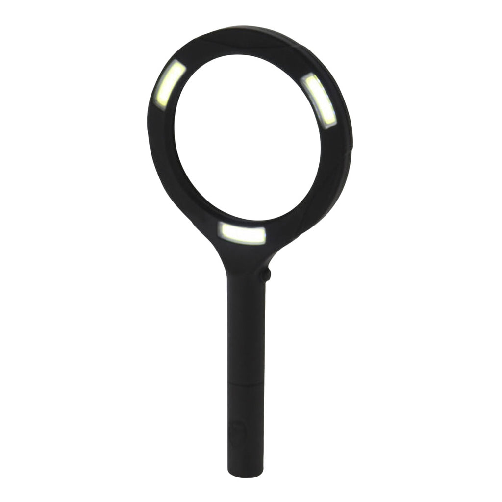 Vergrootglas met ledlicht rondom het glas. Het vergrootglas heeft een lens met 3x vergroting. Rondom zitten 3 ledlichtjes om het zicht bij donkere omstandigheden te verbeteren. Werkt op batterijen (2xAA, niet inbegrepen).