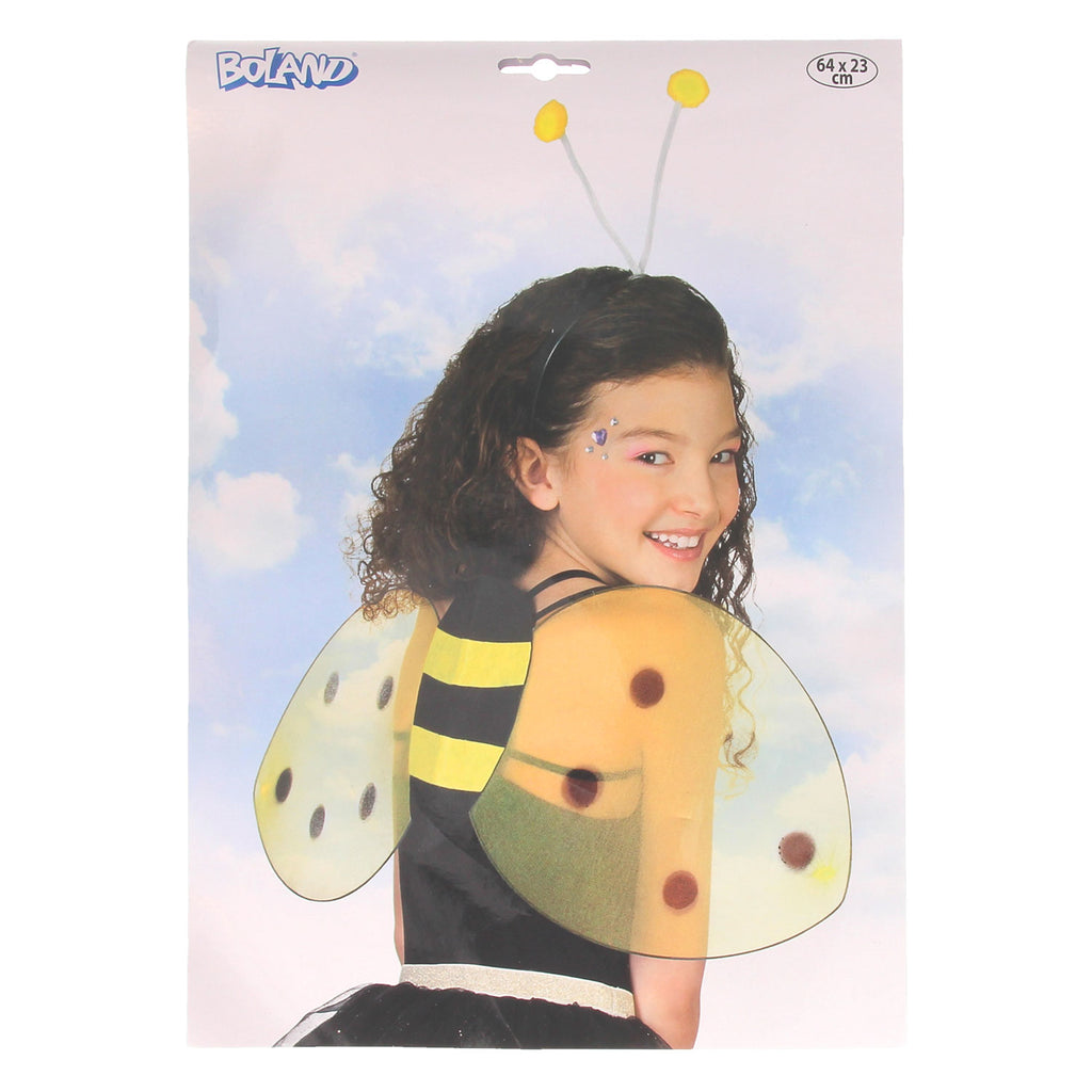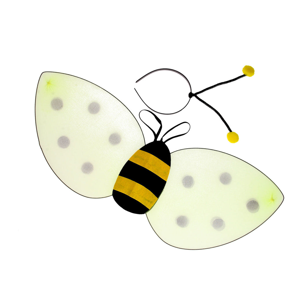 Bij verkleedset met haarband en vleugels. Geschikt voor kinderen vanaf 3 jaar.