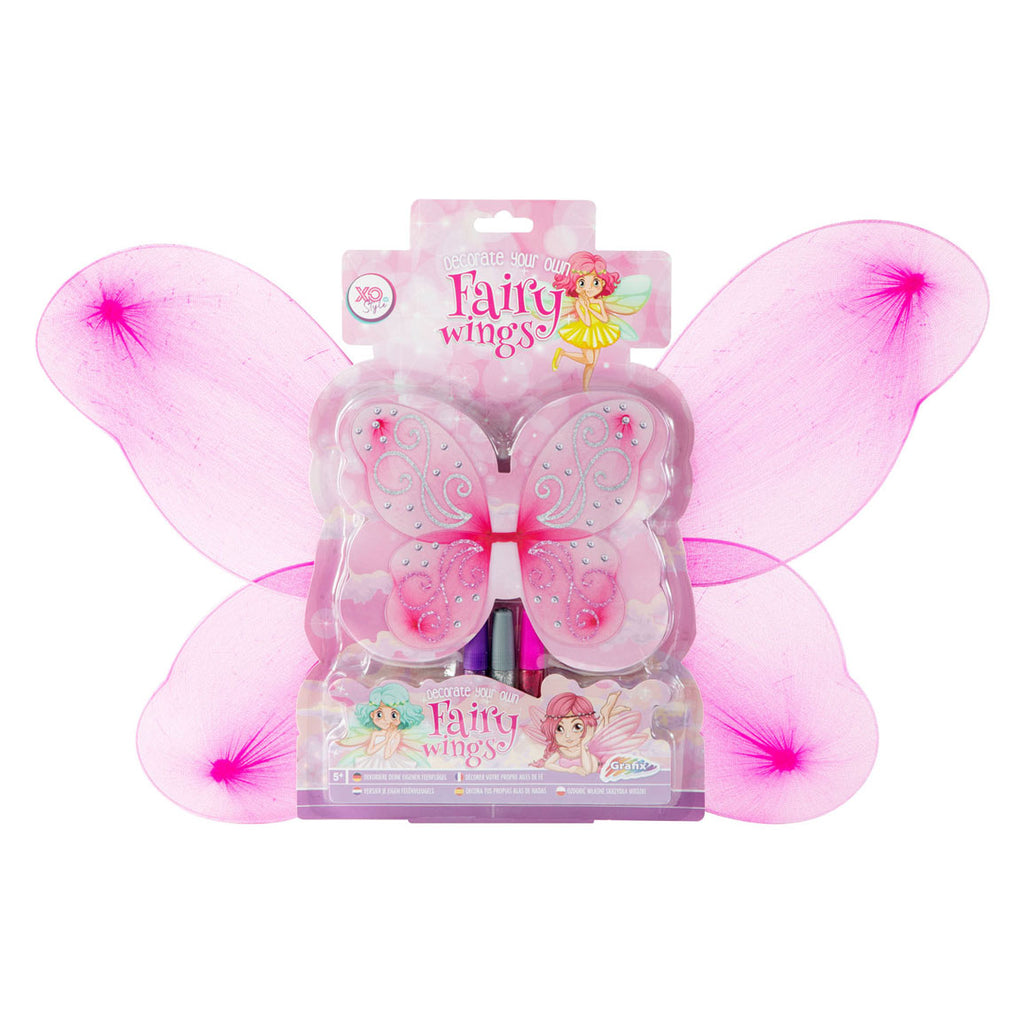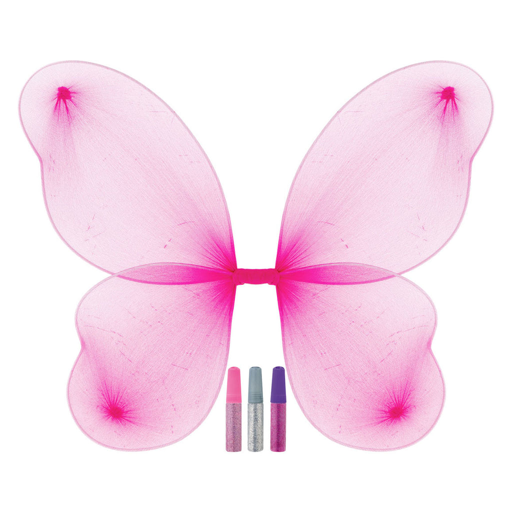 DIY knutselset voor het zelf versieren van speelgoed feeënvleugels. Inclusief 1 paar roze vleugels, 3 kleuren glitterlijm en plaksteentjes. Geschikt voor kinderen vanaf 5 jaar oud.