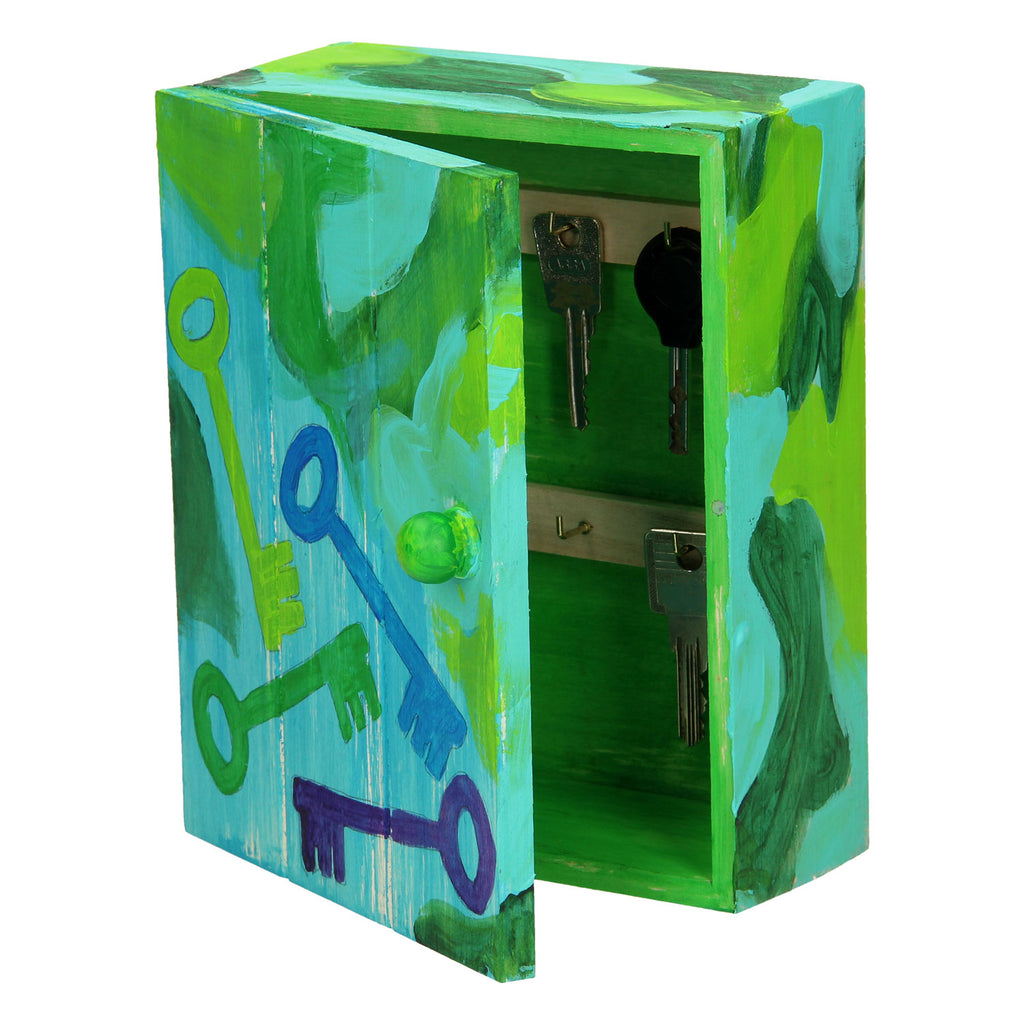 Versier je eigen sleutelkastje van hout. Het sleutelkastje heeft zes haakjes.