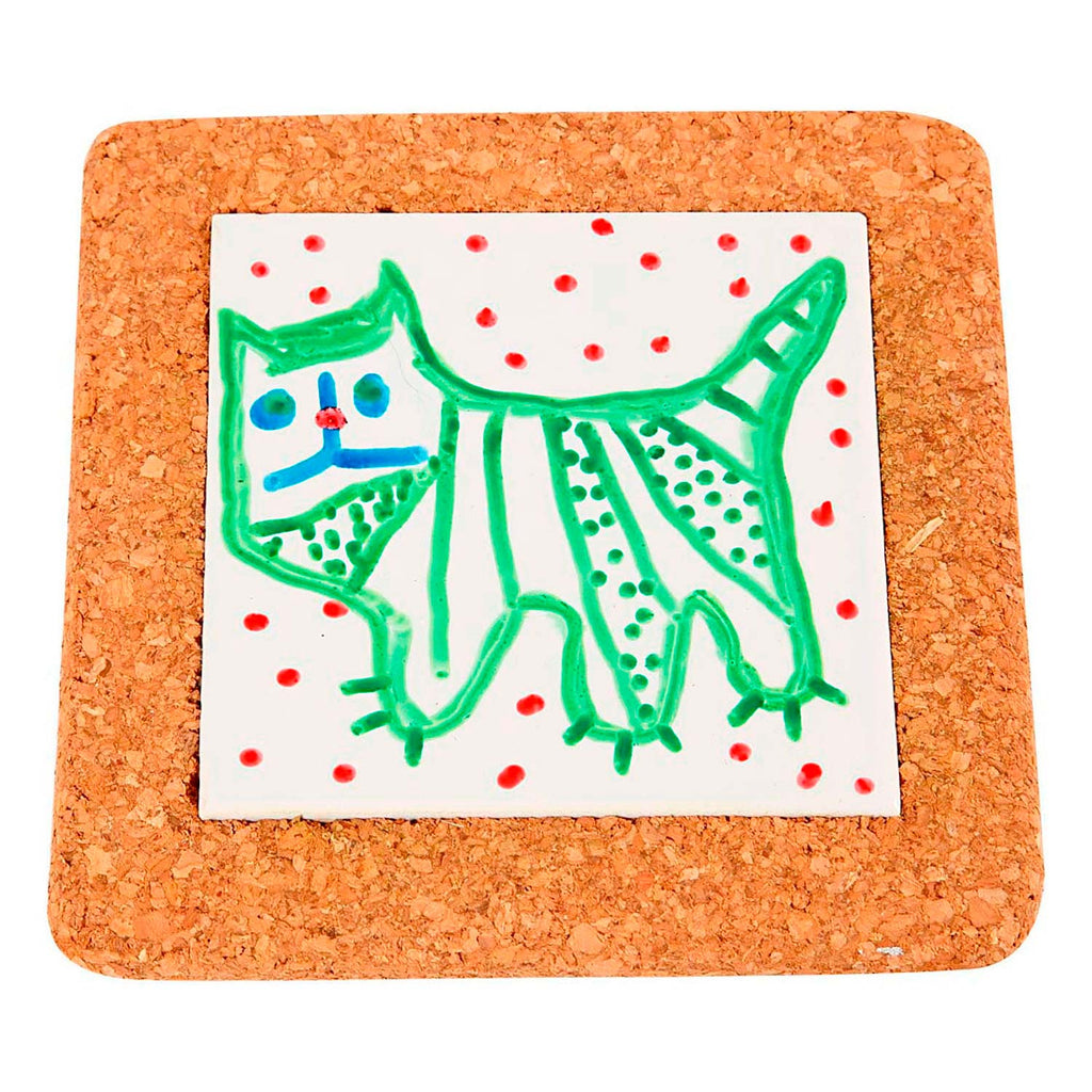 Versier je eigen Onderzetter! Deze kurken onderzetter is voorzien van een witte keramieken tegel waarop je met porseleinstiften- of verf kan tekenen of schilderen.