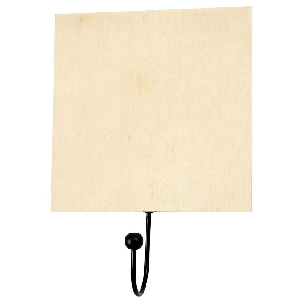 Set van 10 ophanghaken om zelf te versieren. Het houten bordje is voorzien van een zwarte ophanghaak. Aan de achterkant vind je een ophangoog om het bordje op te kunnen hangen. Versier het bordje met stiften, glitterlijm of verf en maak een uniek exemplaar.