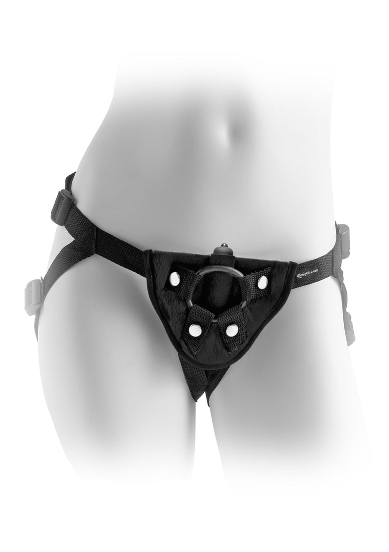Het Vibrerend Pluche Harnas is de perfecte keuze voor vrouwen en stellen die op zoek zijn naar kwaliteit en comfort. Het harnas is gemaakt van stevig materiaal en heeft een extra zachte padding aan de voorkant. Hierdoor blijft het comfortabel om te dragen en voorkom je teveel druk tijdens het stoten. Binnenin dit kussen zit een klein vakje waar je de bijgeleverde bullet vibrator in kunt doen. De vibraties zijn voelbaar over de gehele voorkant en in de voorbinddildo. Het Pluche Harnas is inclusief 3 siliconen cockringen (3 cm, 3,8 cm en 5 cm binnendiameter) waardoor je al je favoriete dildo's kunt bevestigen. De verstelbare banden maken het strap-on harnas geschikt voor een heupomvang tot 139 cm en bovenbeenomvang tot 76 cm.