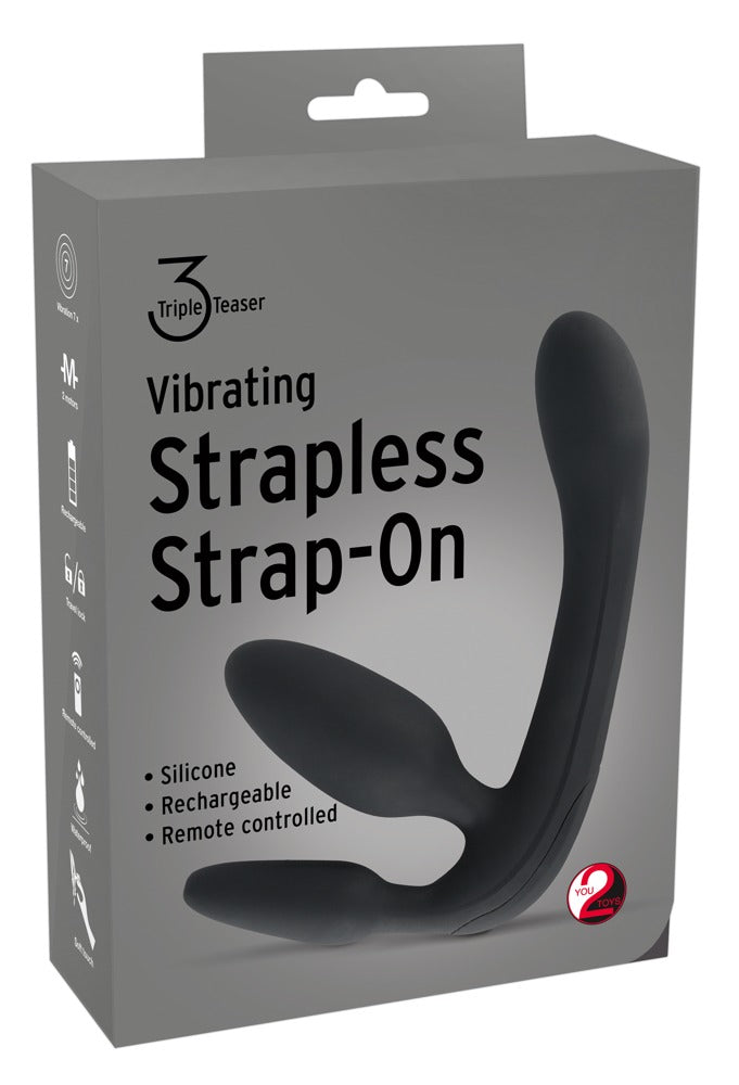 Sophisticated purple triple toy for erotic role plays - provides double penetration for the active part and simultaneous stimulation for the passive part. SHE inserts the vibrator into her vagina and the butt plug into her anus and can then penetrate her partner with the other vibrator. 7 vibration modes and 2 motors add a lot of variation to the fun and can be controlled easily with the wireless remote control. Can also be used in the bathtub or shower since the vibrator trio is waterproof. It also has a travel lock making it a discreet travel companion. Includes a USB charging cable.