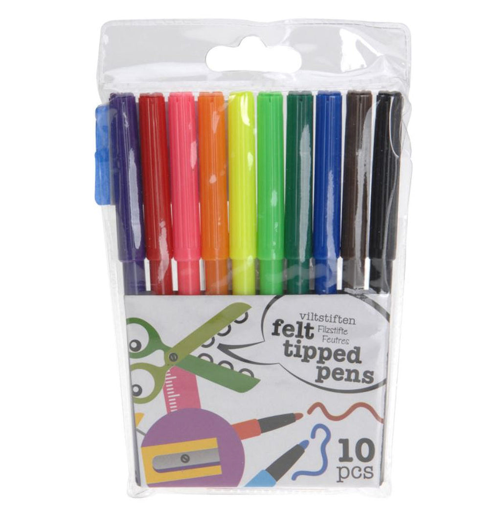 Kleuren en tekenen, altijd leuk! Het kan met deze viltstiften in 10 basiskleuren.
