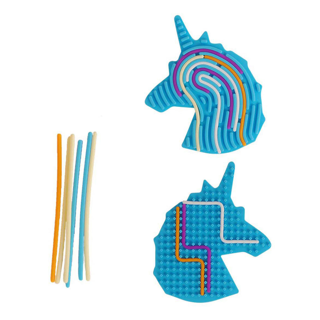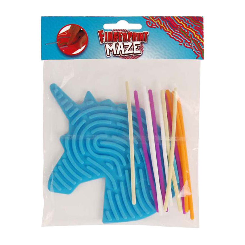Vingerafdruk doolhof in een eenhoorn vorm met 12 sticks en een grootte van 18,5 cm.