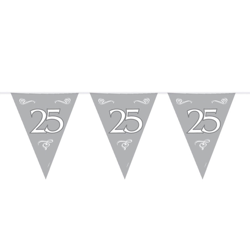 Dubbelzijdige kunststof zilveren vlaggenlijn met het cijfer 25.