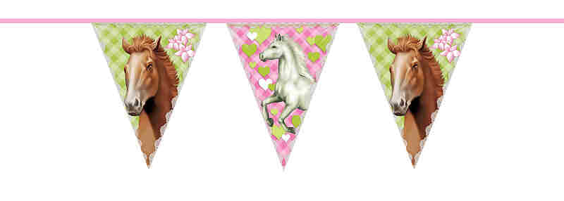 Maak je paardenfeestje compleet met deze kunststof vlaggenlijn met op iedere vlag een afbeelding van een paard.