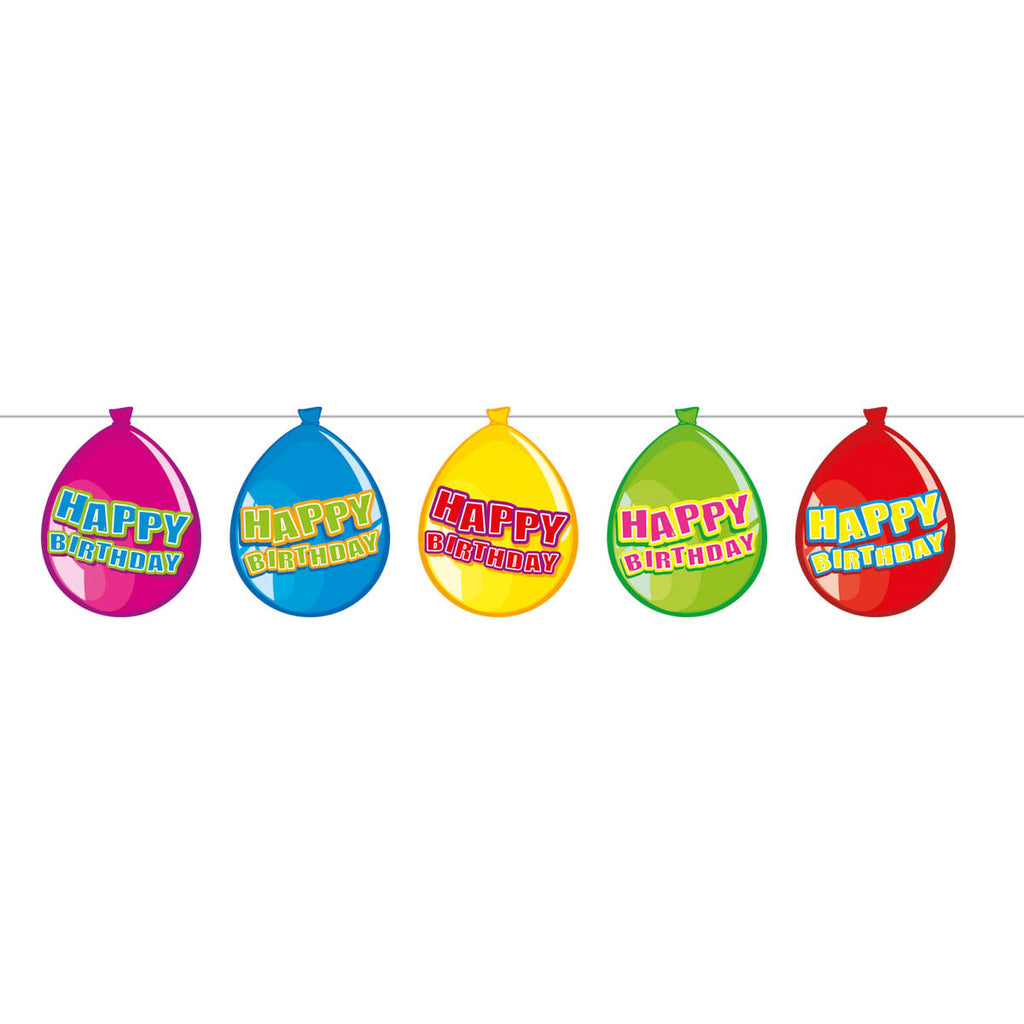 Maak de versiering voor je verjaardag compleet met deze vlaggenlijn met ballonnen met Happy Birthday erop. De vlaggenlijn is 10 meter lang en heeft 15 kartonnen wimpels met een tweezijdige bedrukking.