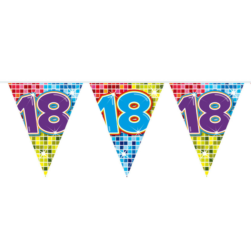 Er is er één jarig, hoera! Weet jij hoe oud de jarige is geworden? Met deze slinger hoeft niemand meer te twijfelen. Zo weet je altijd precies dat de jarige 18 jaar geworden is! Eindelijk volwassen! De slinger is 6 meter lang en heeft 15 vlaggetjes van 27 cm hoog.